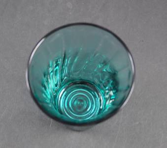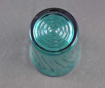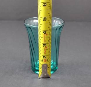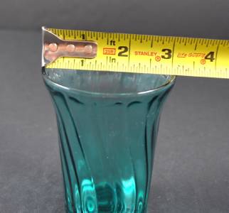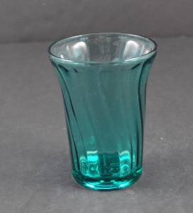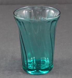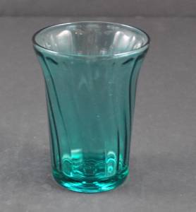 This is a vintage Jeannette nine ounce flat tumbler in the swirl pattern and the aqua blue green Ultramarine color. It is about 4 1/4 inches high. There are not any chips or cracks!!!!