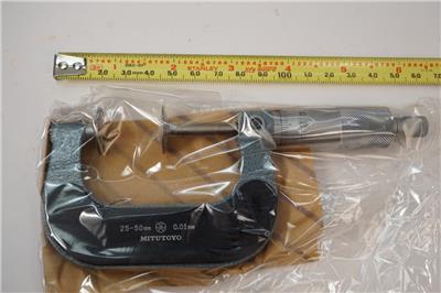 This sale is for 1 New Mitutoyo Japan 25-50mm Range .01mm Grad Disc and Flange Micrometer 123-102.