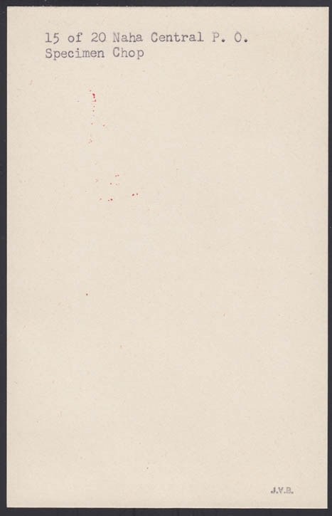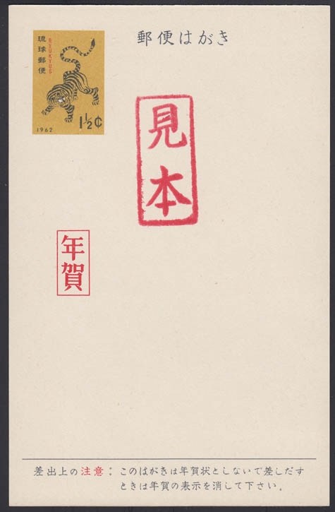 Ryukyu Islands, 1961. Post Card, Scott UX19 with File "MIHON" , Specimen handstamp in red. Card No. 15 of 20 signed Bush, J.V.B. Clean and VF.