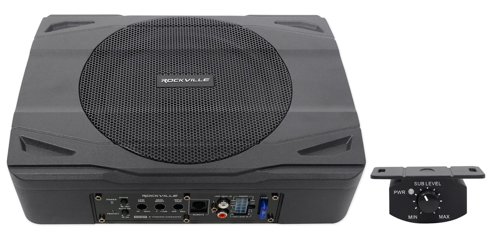 The SS8P is an all in one solution to give you great sounding bass in your vehicle without taking up a lot of space. This sub enclosure is only 2.8" thick so that it can easily fit under your seat. The amplifier is built in, so installation and wiring is clean and simple. This is a true all in one subwoofer solution with the subwoofer built into the enclosure along with a top of the line amplifier built in as well.