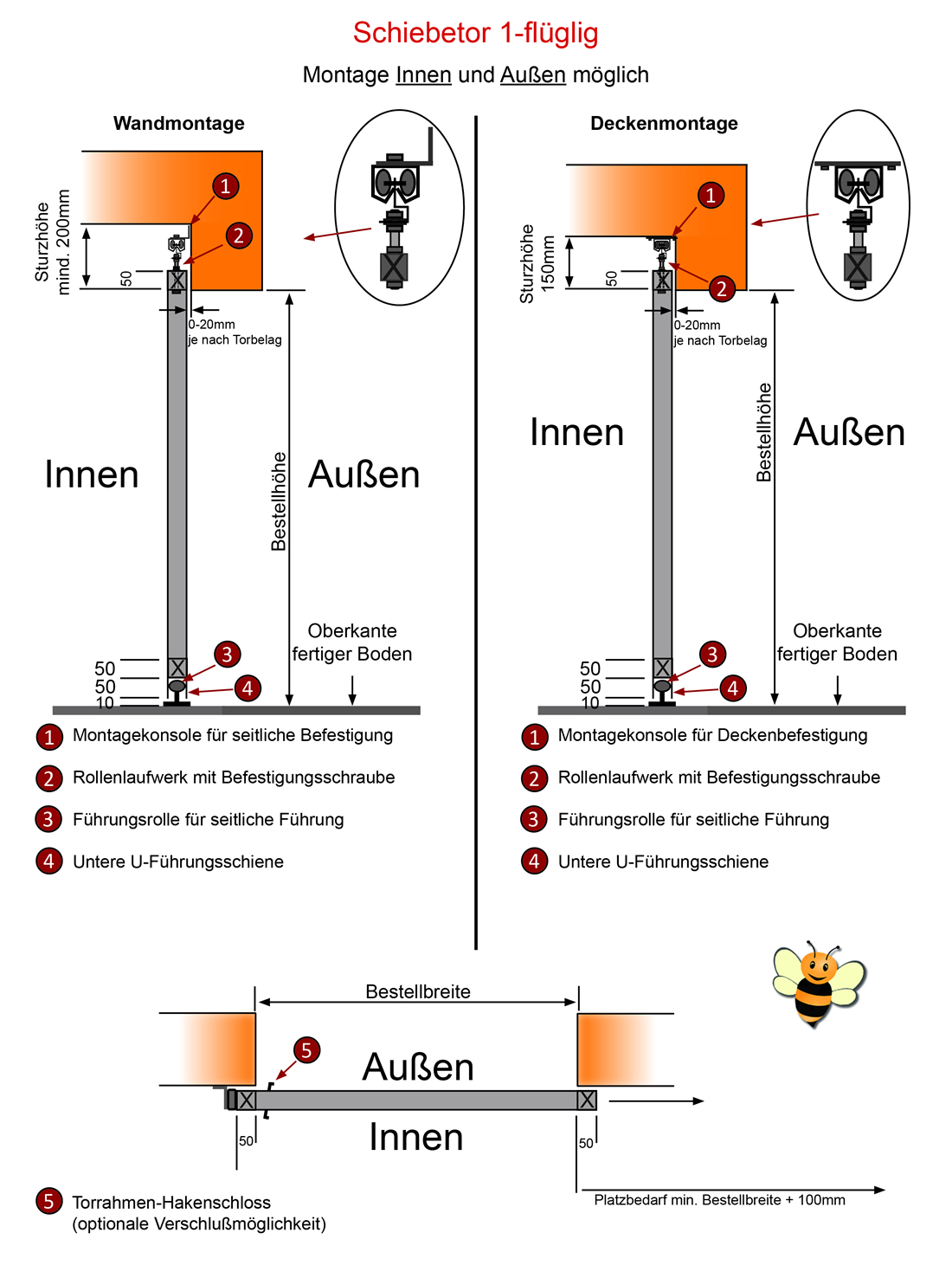 Sofort Kauf Bausatz 1-flg Gehtür Schiebetor B=125H=19750cm Garagentor Gartentor ✔