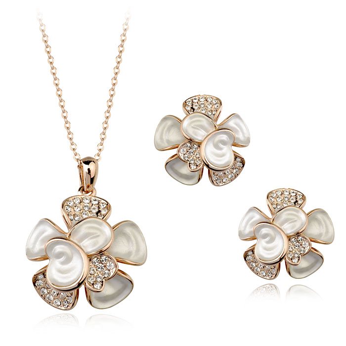 Fashion Jewelry - 18K Rose Gold Plated Flower Set (FS072)
