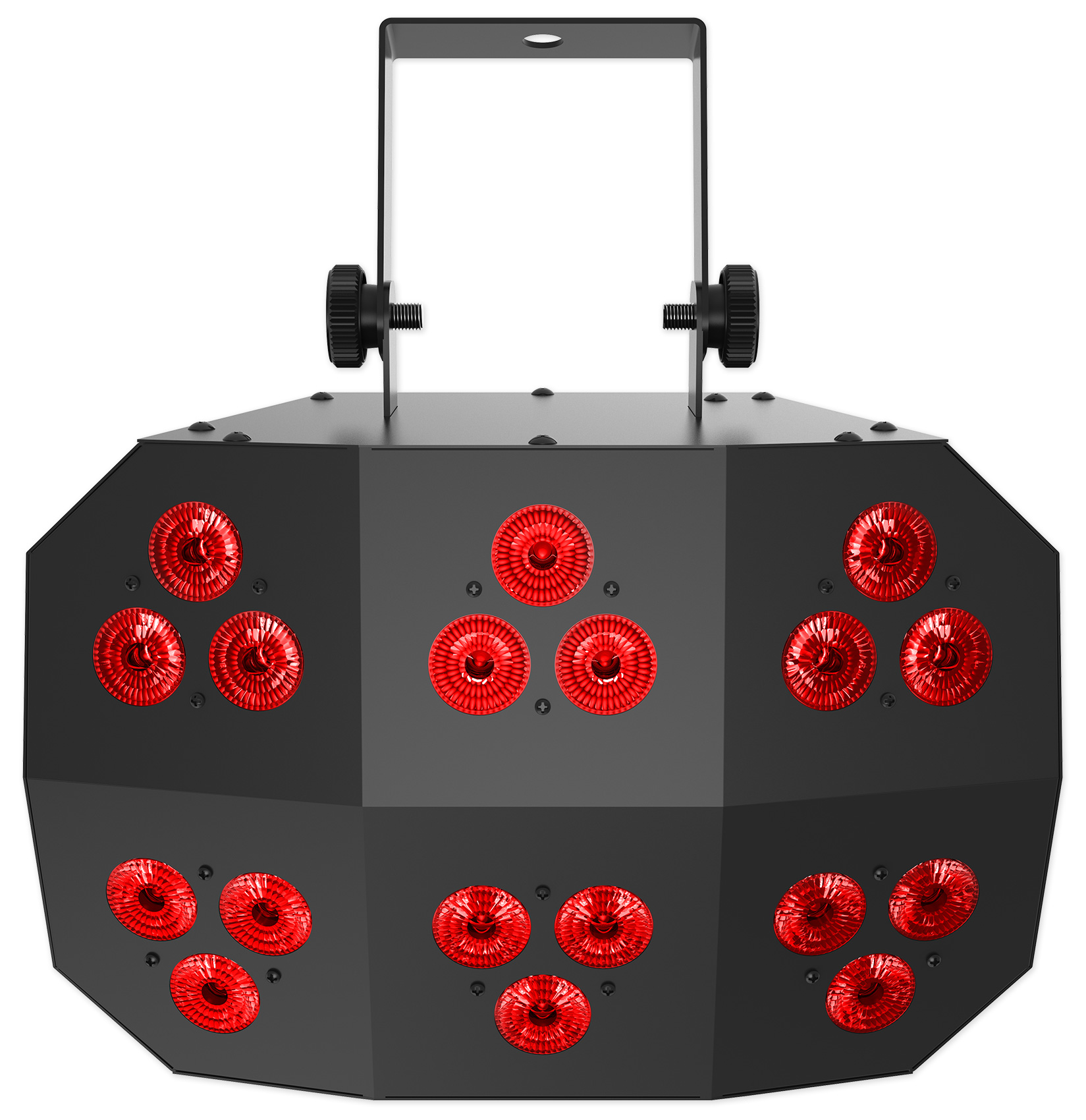 multi-purpose effect light with 18 Quad-color (RGB+UV) LEDs that can be