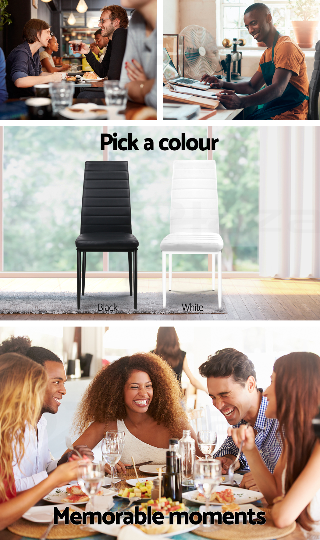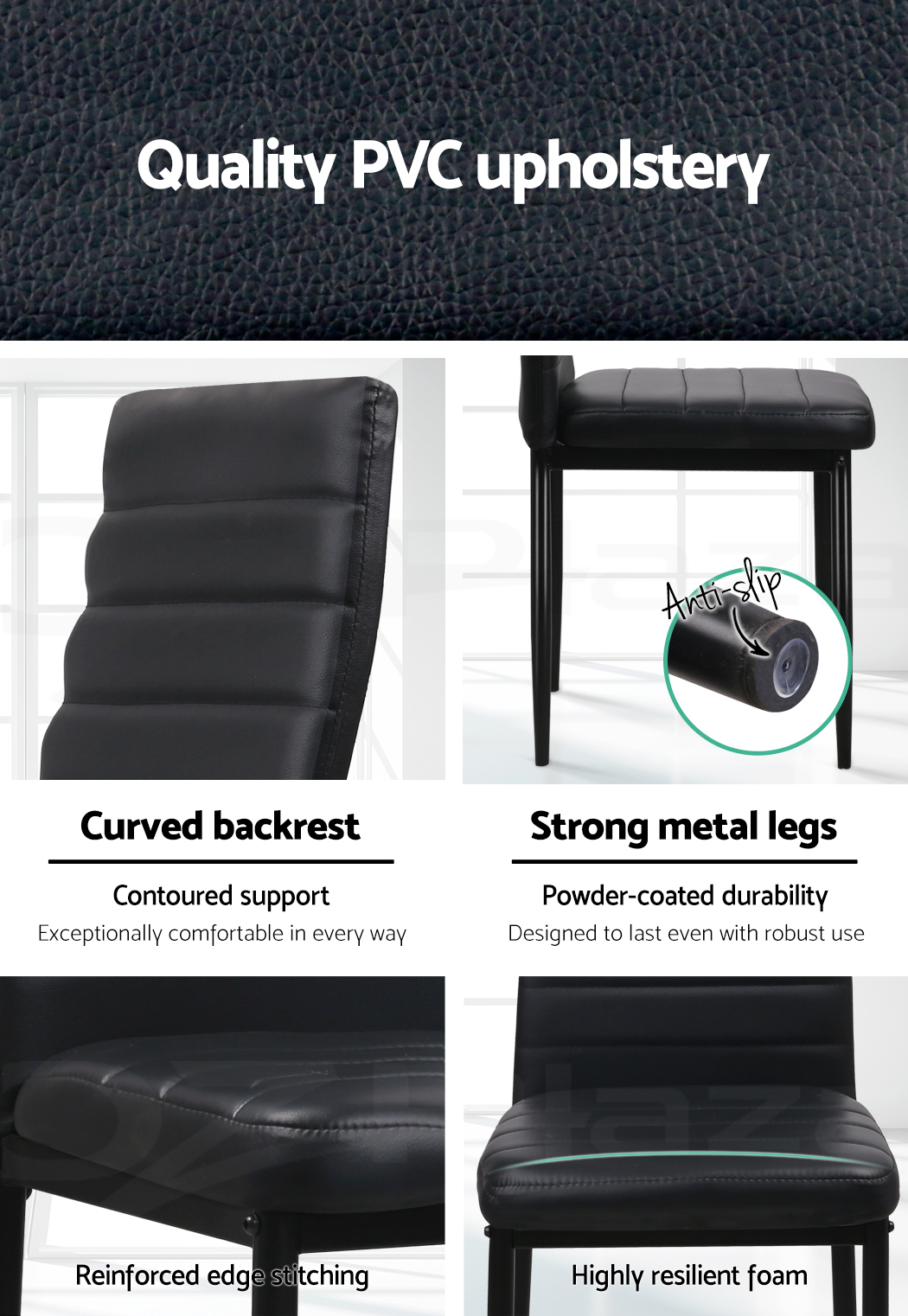 The tall backrest is more than just a distinguish design albeit its matt finish PVC upholstery, together with the seat, clearly score high on the craftsmanship stakes. It also provides a good back support with the well-padded waterproof seat to ensure that every diner enjoys their delightful meal as they do with their comfortable seating.