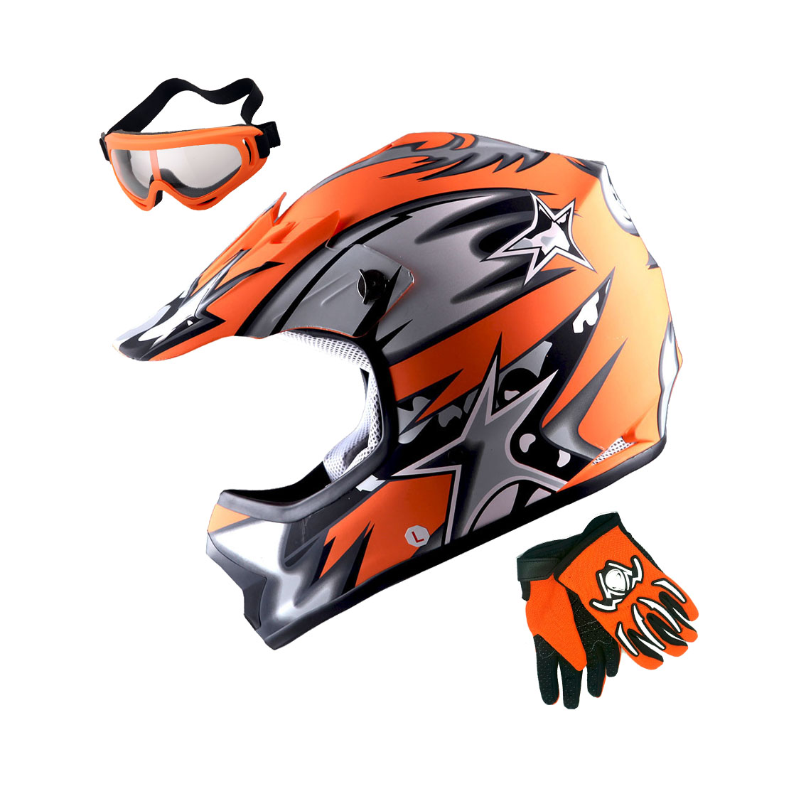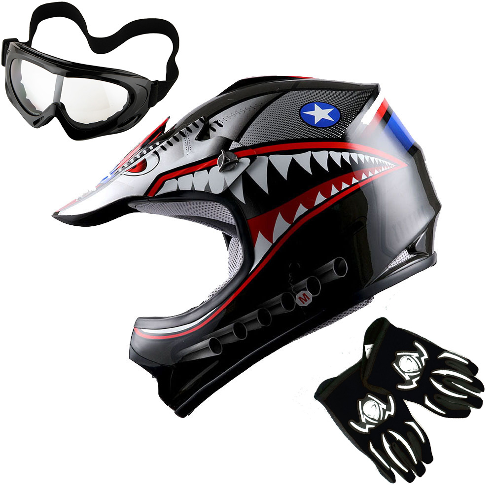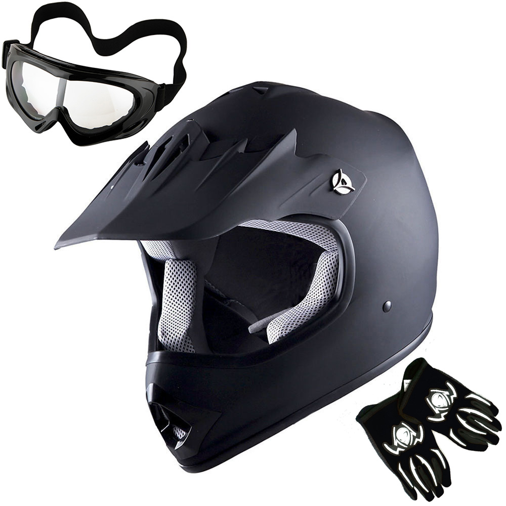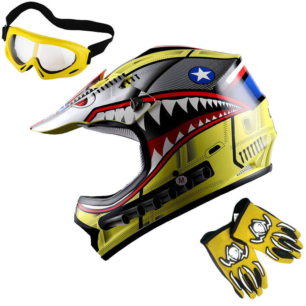 WOW Youth Kids Motocross BMX ATV Dirt Bike Helmet HBOY + Goggles + Gloves Package Includes: One Youth MX Youth Helmet + One Pair of MX Goggles + One Pair of MX Gloves; (Please make sure to check the size chart below for the right glove size and helmet size before ordering) |