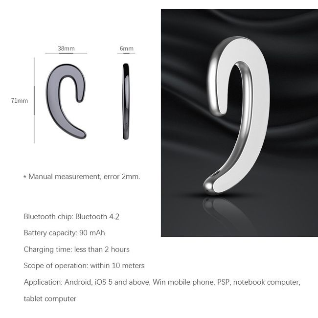 -A Bluetooth headset without earplugs, This is a great innovative design, this products no need to vibrate ear bones, more comfortable and healthier than bone conduction headset