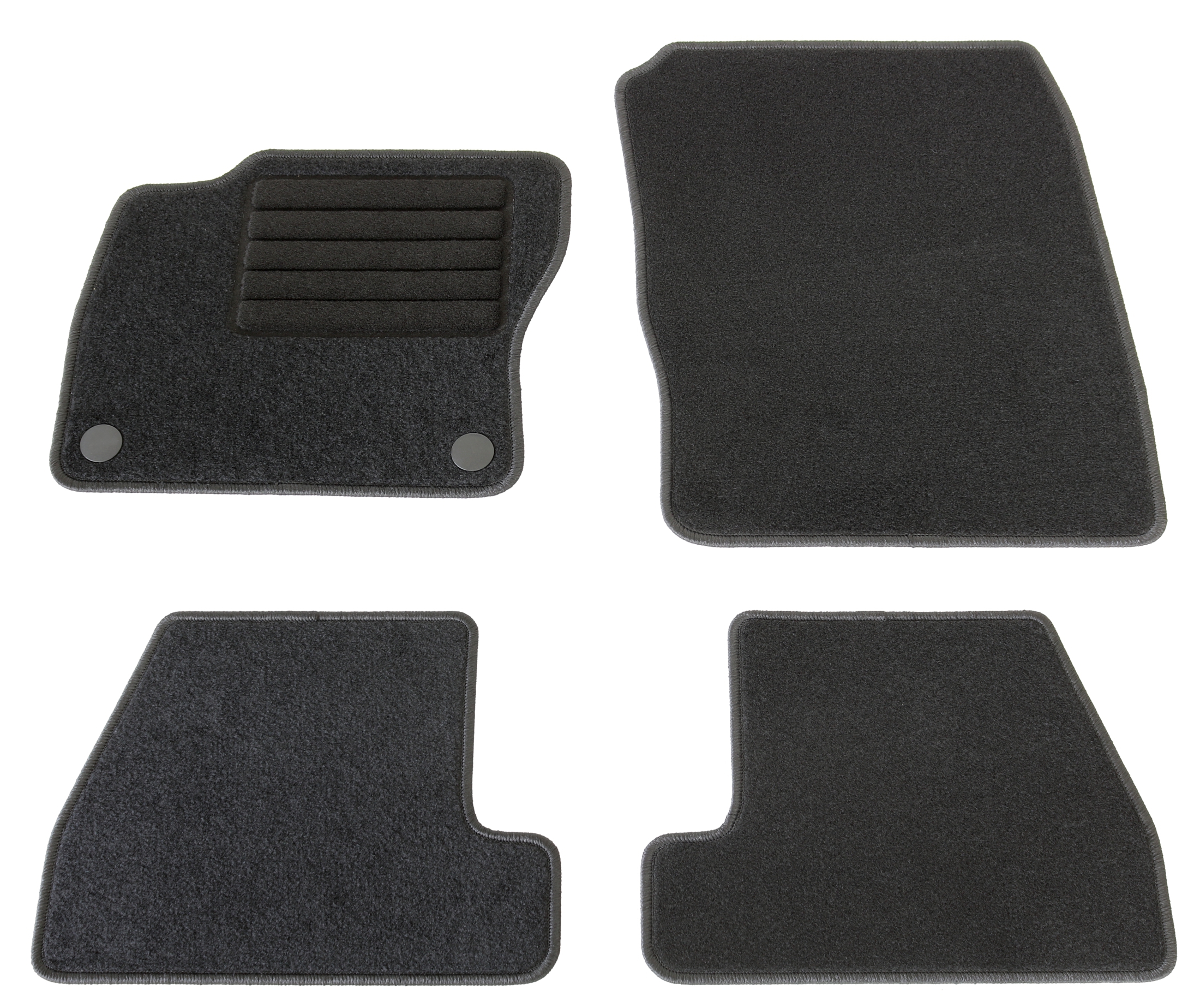 Die Grundfarbe der Fußmatten ist schwarz. Dies passt sich bestens und neutral an die meisten Fahrzeuge an, deren Bodenteppich bereits dunkel gehalten ist. Unauffällig und dezent, aber dennoch hochwertig eingefasst sind die Fußmatten mit schwarzem Glanzgarn gekettelt.