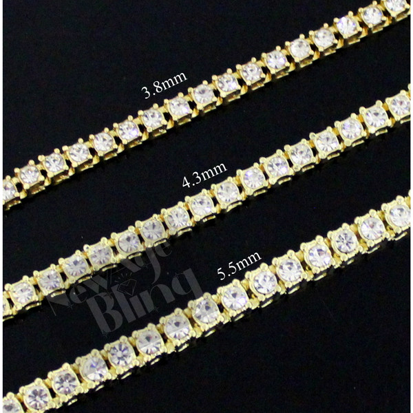 1 Row Tennis Necklace 14k Gold Plated Choker Cubic Zirconia Chain 3.8 - 5.5mm