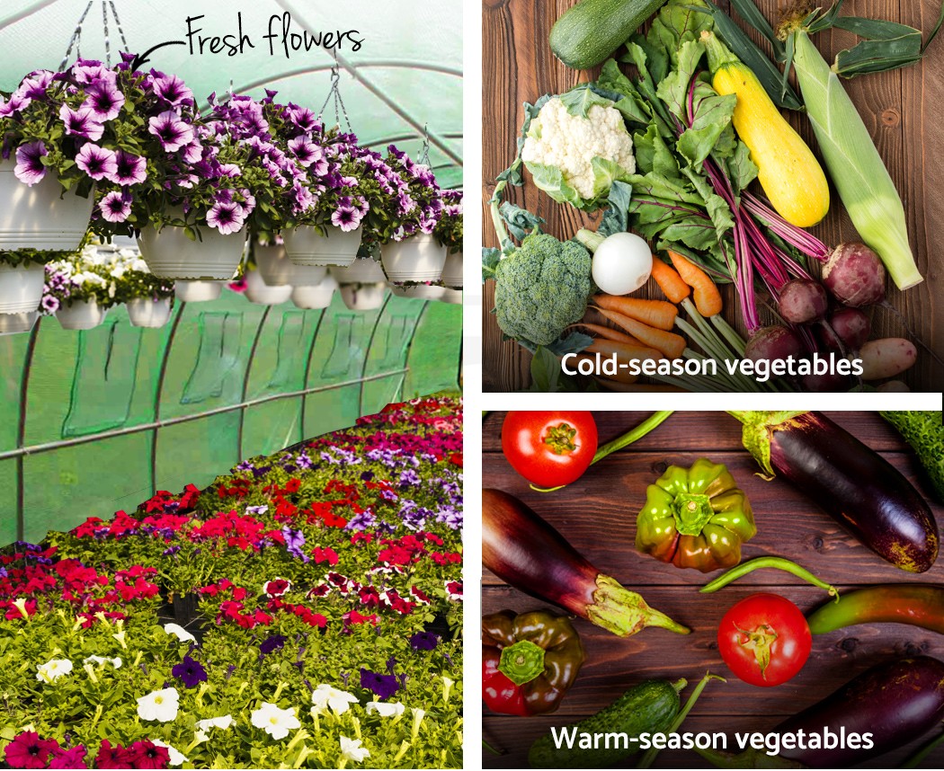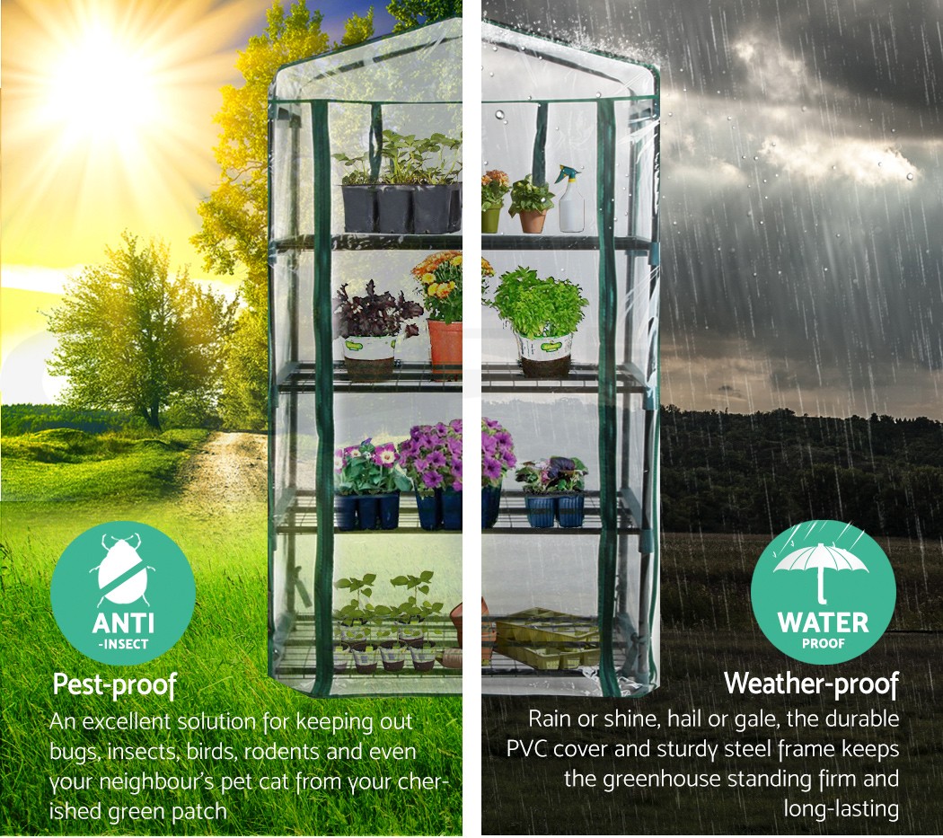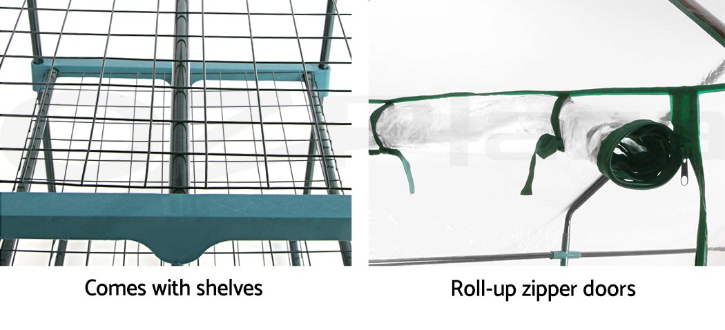 The durable PVC greenhouse retains heat for better growth and comes with all necessary fittings for easy setup.