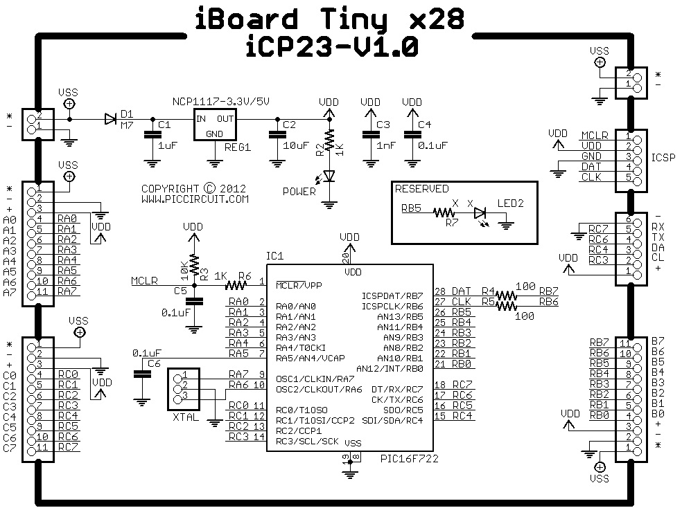 iBoard Tiny x28 is a mini size 28 Pin Microchip PIC IO Board with lowest cost, easy interfacing, high performance, user friendly and come with free Hi-Tech C source code.