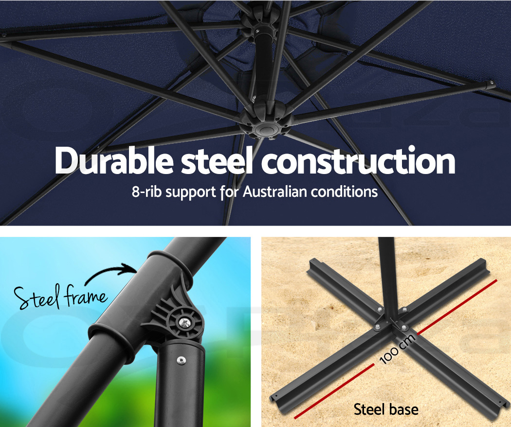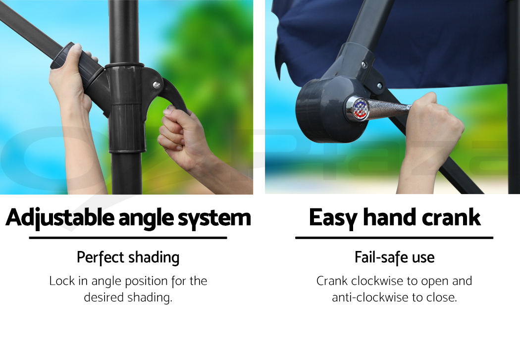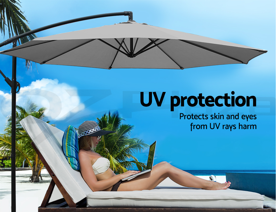 So deck out in style and enjoy the best of fun under the sun without any weather worries with Cantilevered Outdoor Umbrella. Comes in 3 colours, get yours today for a great summer!