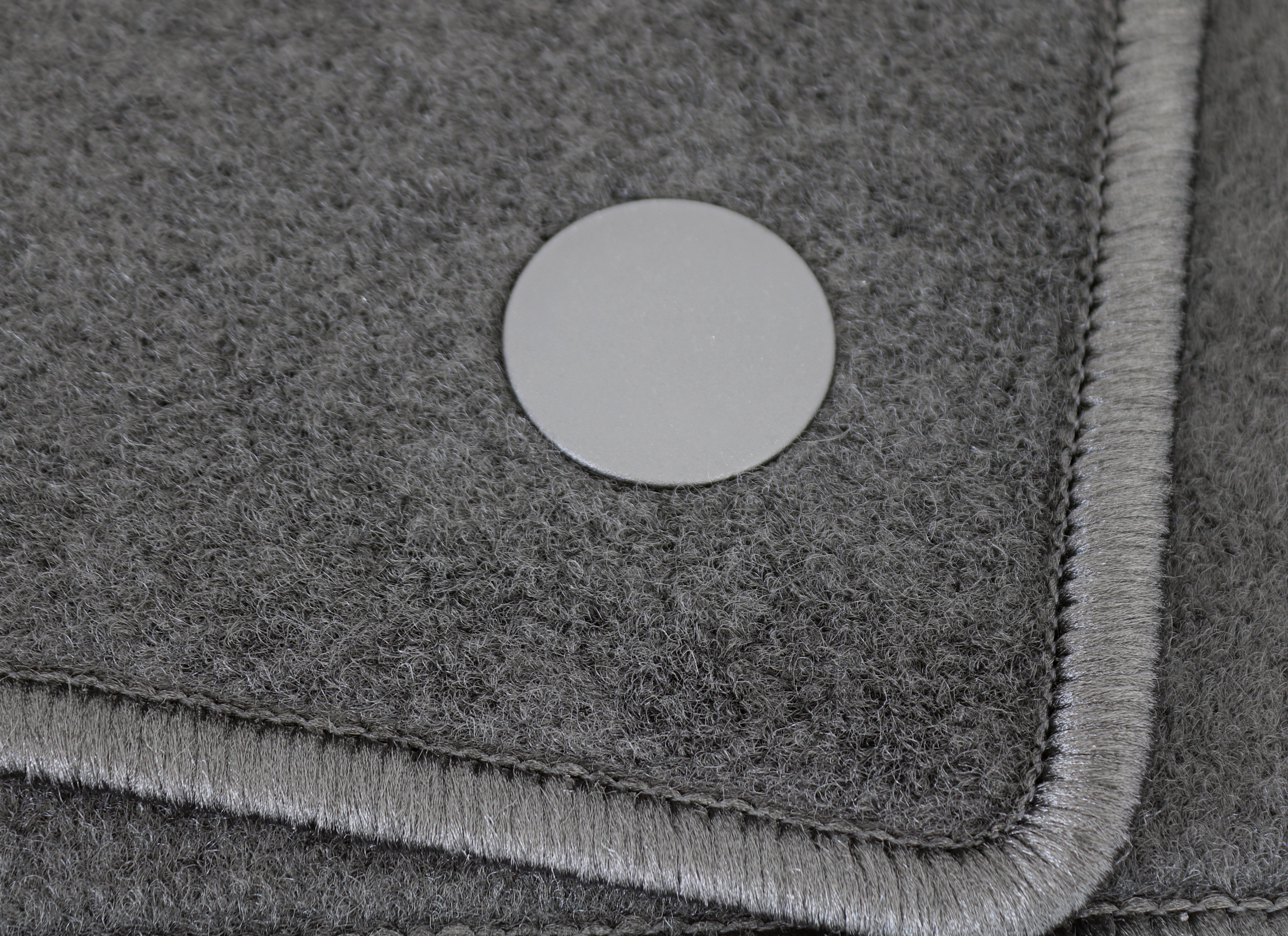 Die Grundfarbe der Fußmatten ist schwarz. Dies passt sich bestens und neutral an die meisten Fahrzeuge an, deren Bodenteppich bereits dunkel gehalten ist. Unauffällig und dezent, aber dennoch hochwertig eingefasst sind die Fußmatten mit schwarzem Glanzgarn gekettelt.