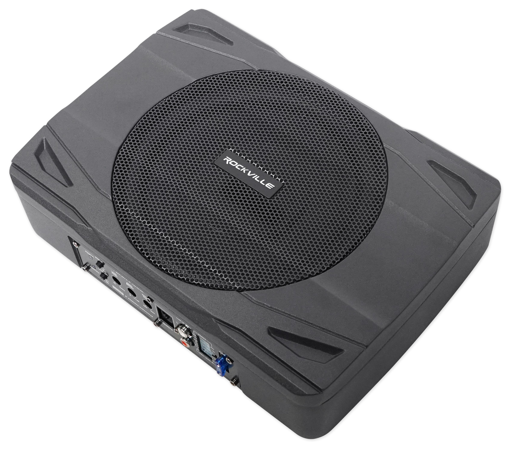 Included is a remote bass knob, and mounting hardware but the best thing about our model is the sound. It is slim but it sounds like a full sized subwoofer If you are not happy with it we will offer you a 90-day money back guarantee. If you don't like the sound, we will send you a pre-paid label and refund you in full!