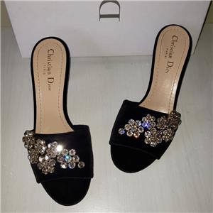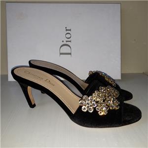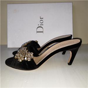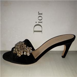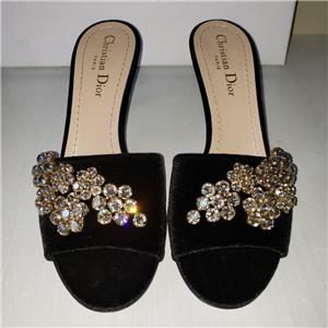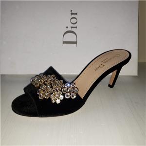 Christian Dior Soul Velvet Mule Sandals with Rhinestone Embellishment