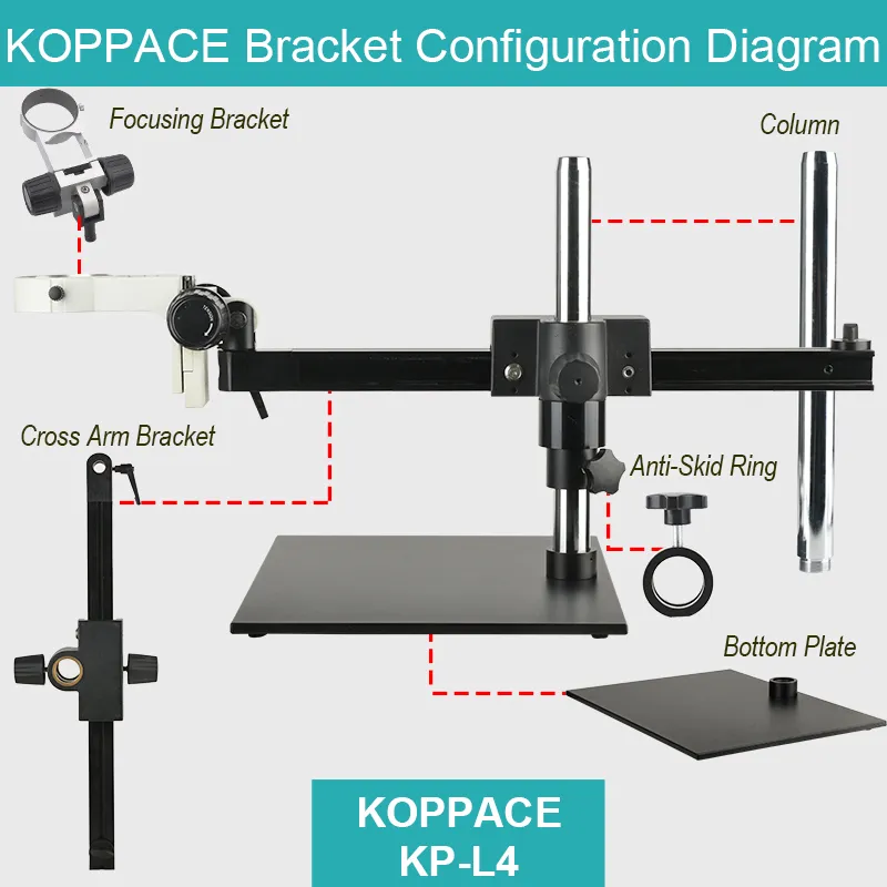 | Packing List: 1. Bottom Plate *1 2. Column *1 3. Cross Arm Bracket *1 4. Anti-Skid Ring *1 5. 76mm Focusing Bracket *1 | |