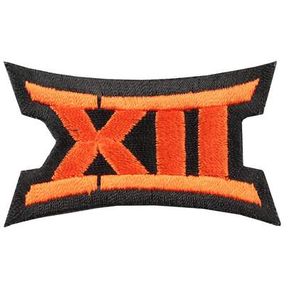 This is the Big 12 conference patch for the Oklahoma State Cowboys as worn on field. These patches can be sewn on jerseys and are officially licensed by the Big 12. The patch measures approximately 2.5 wide x 1.5 inches tall.
