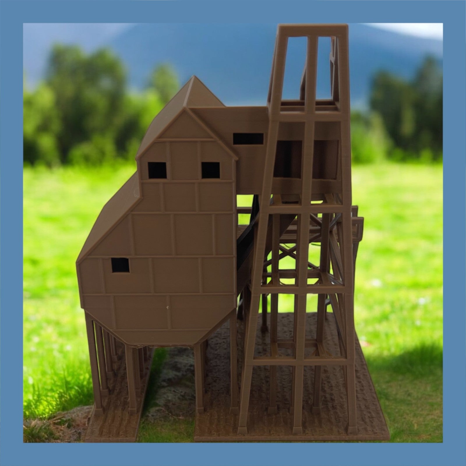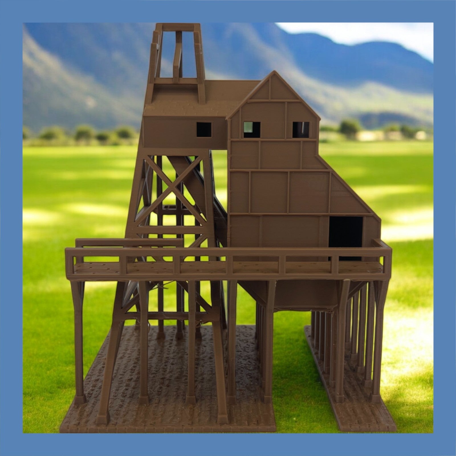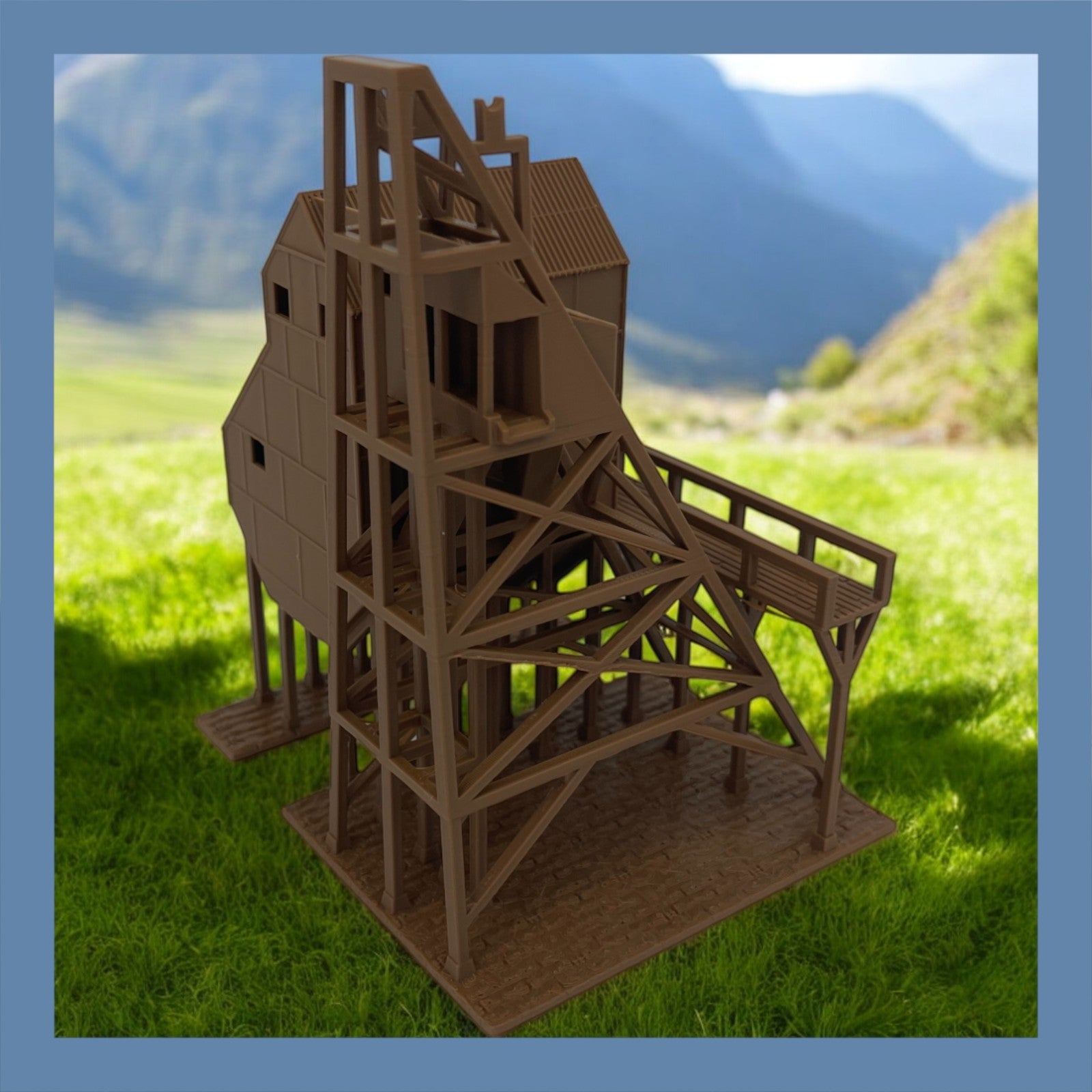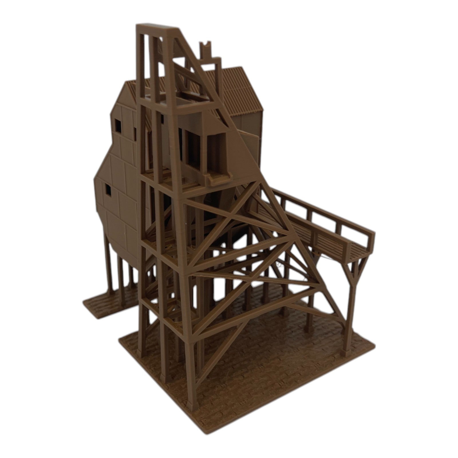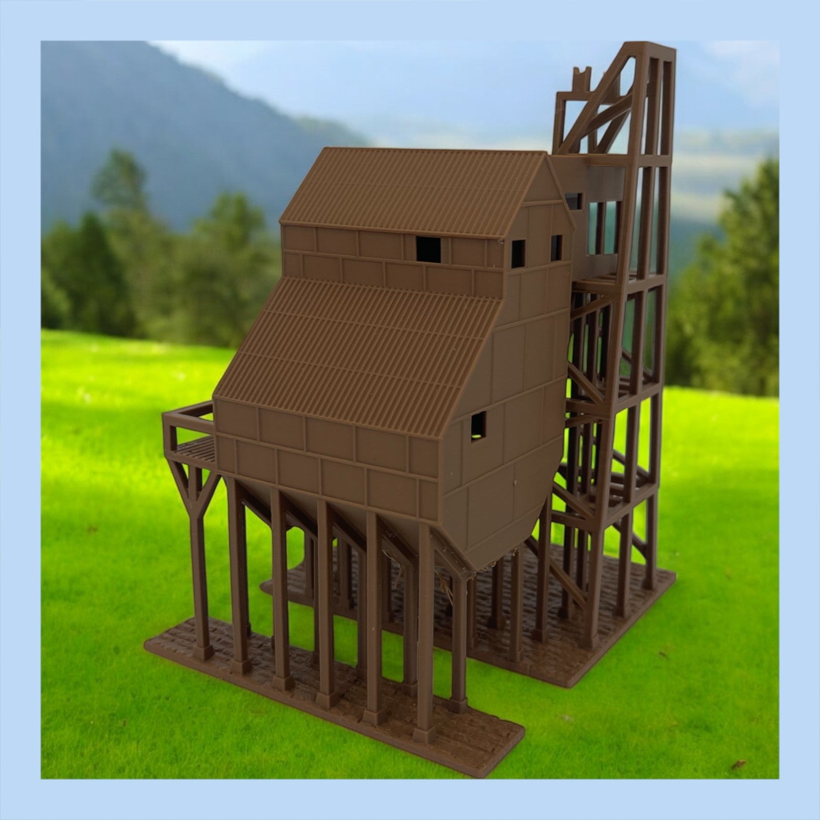 Historically, the original mine featured narrow-gauge ore cars running beneath the structure, allowing ore to be dropped down the mountainside-a detail faithfully represented in the design. This model makes an eye-catching centerpiece for scale layouts, mining scenes, or detailed dioramas.