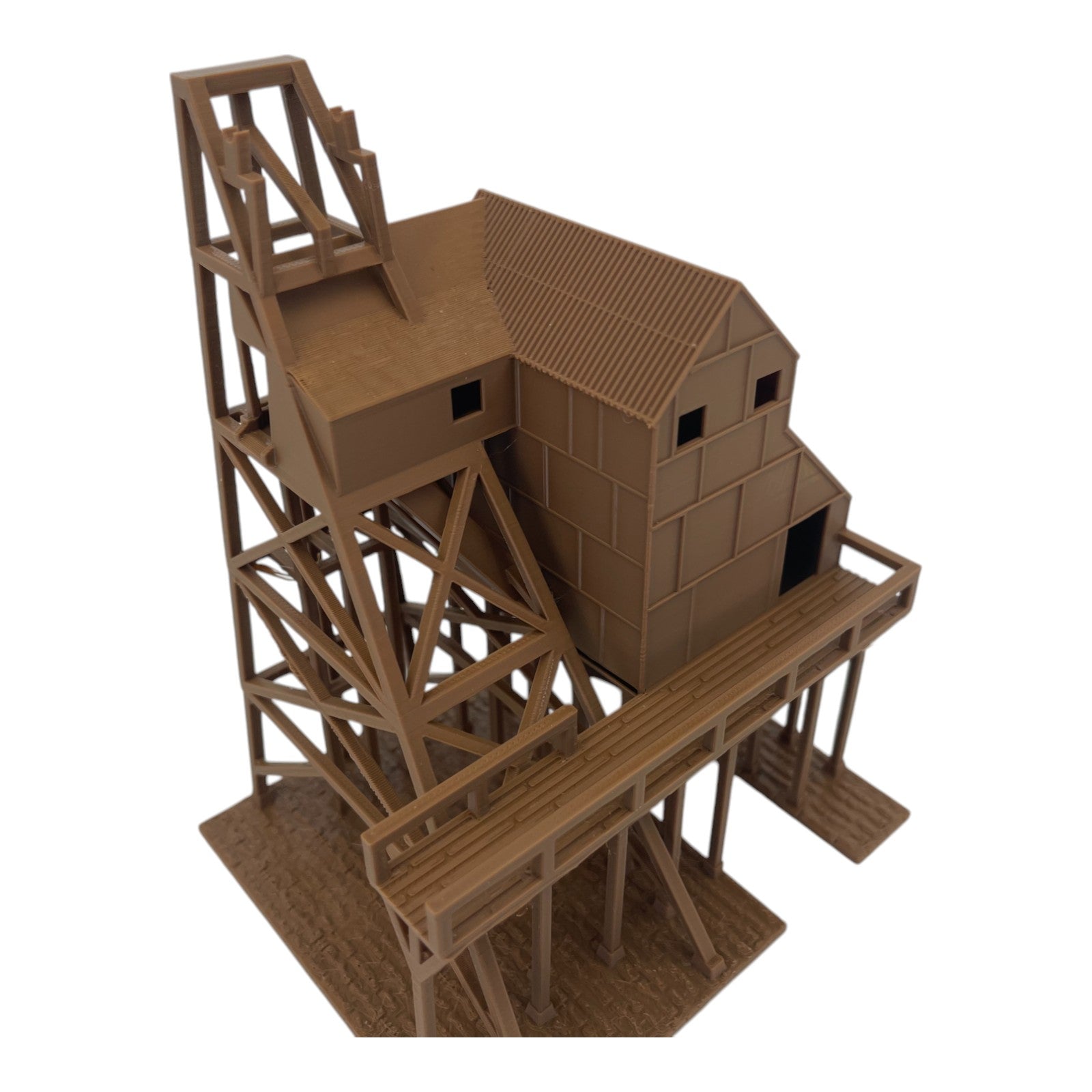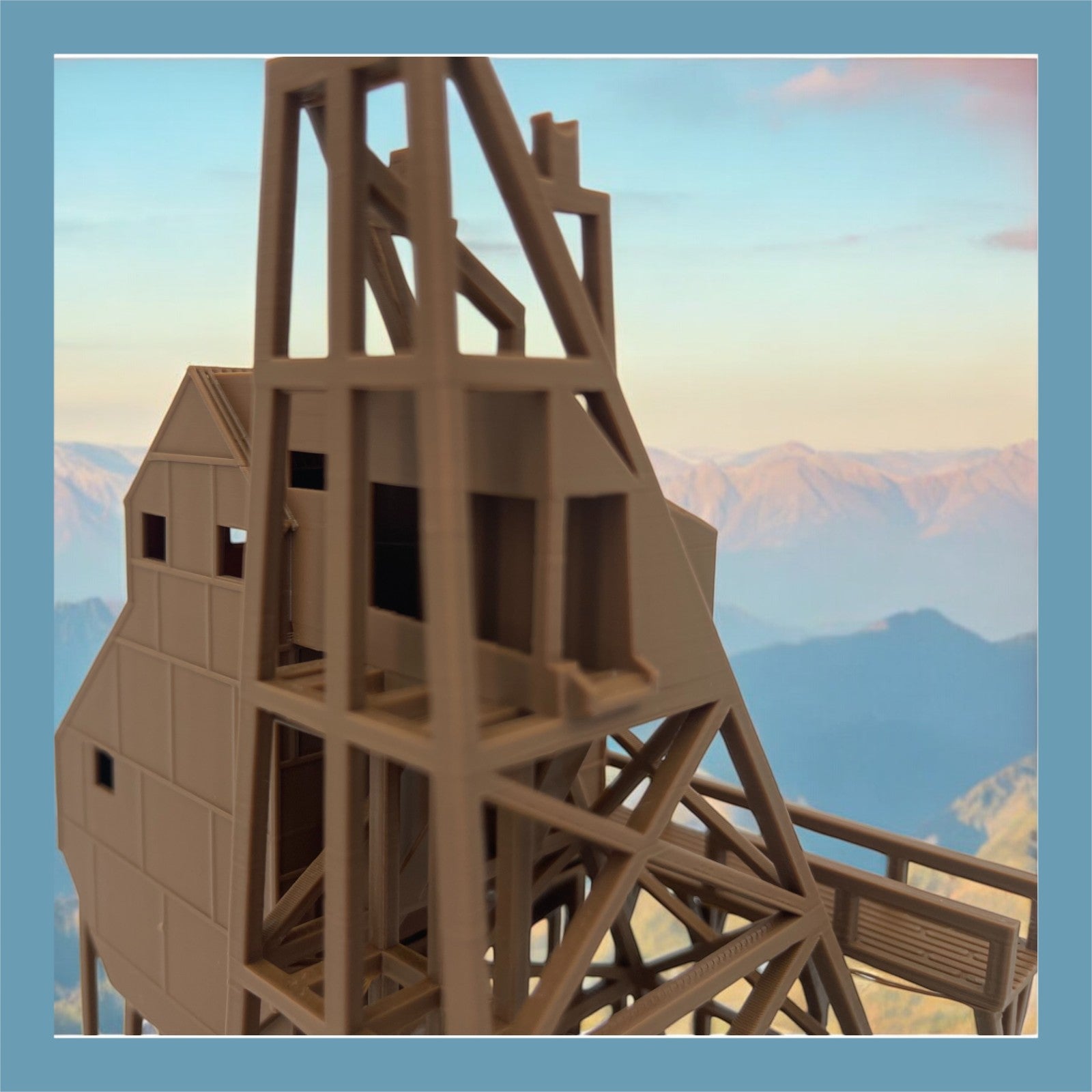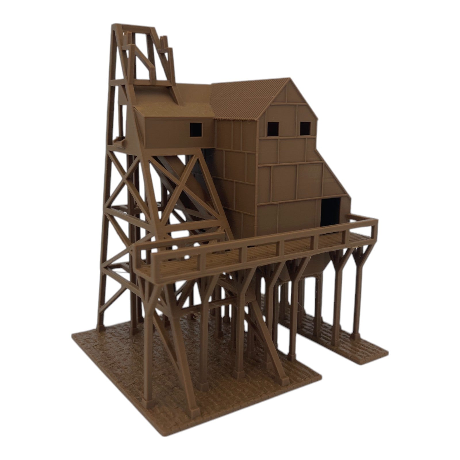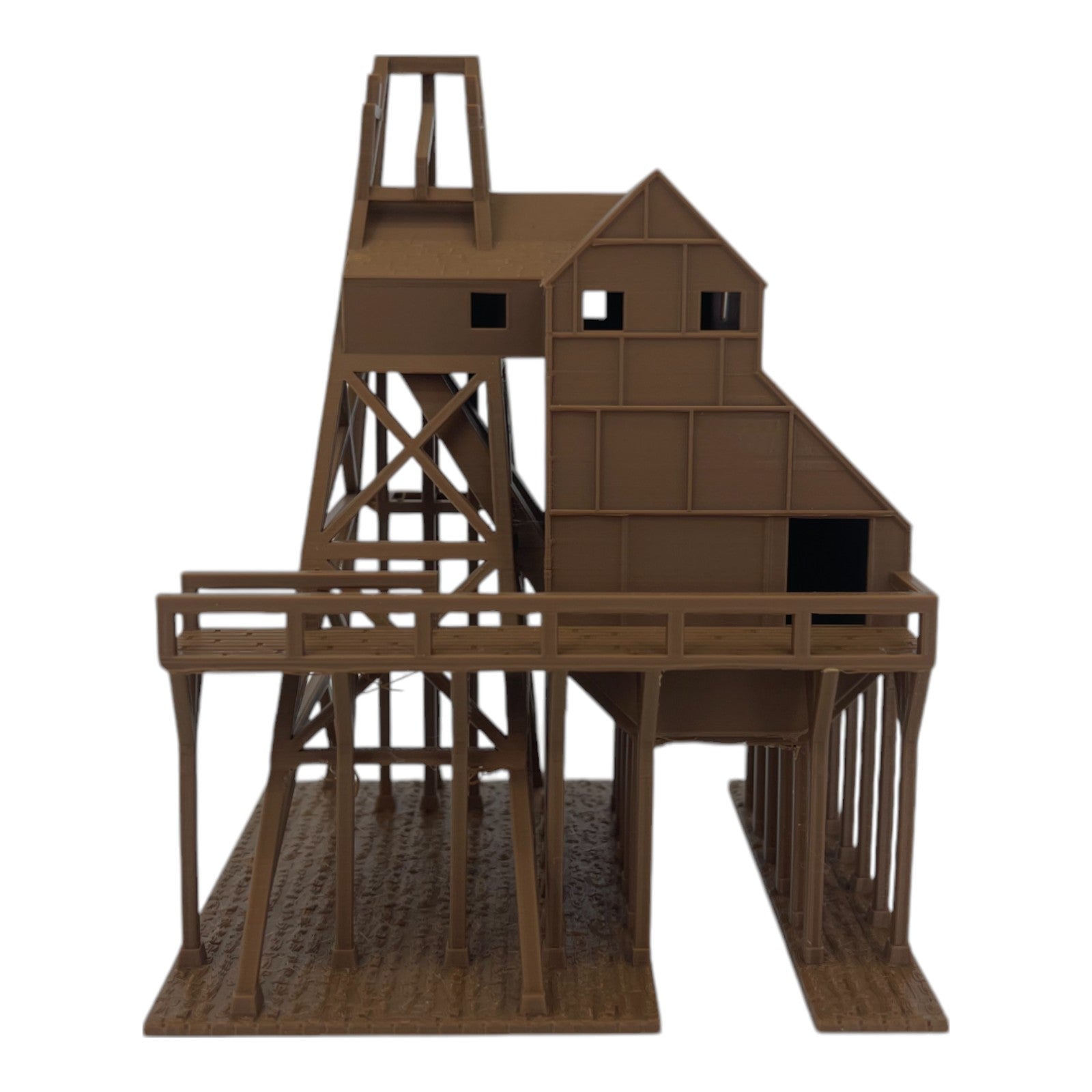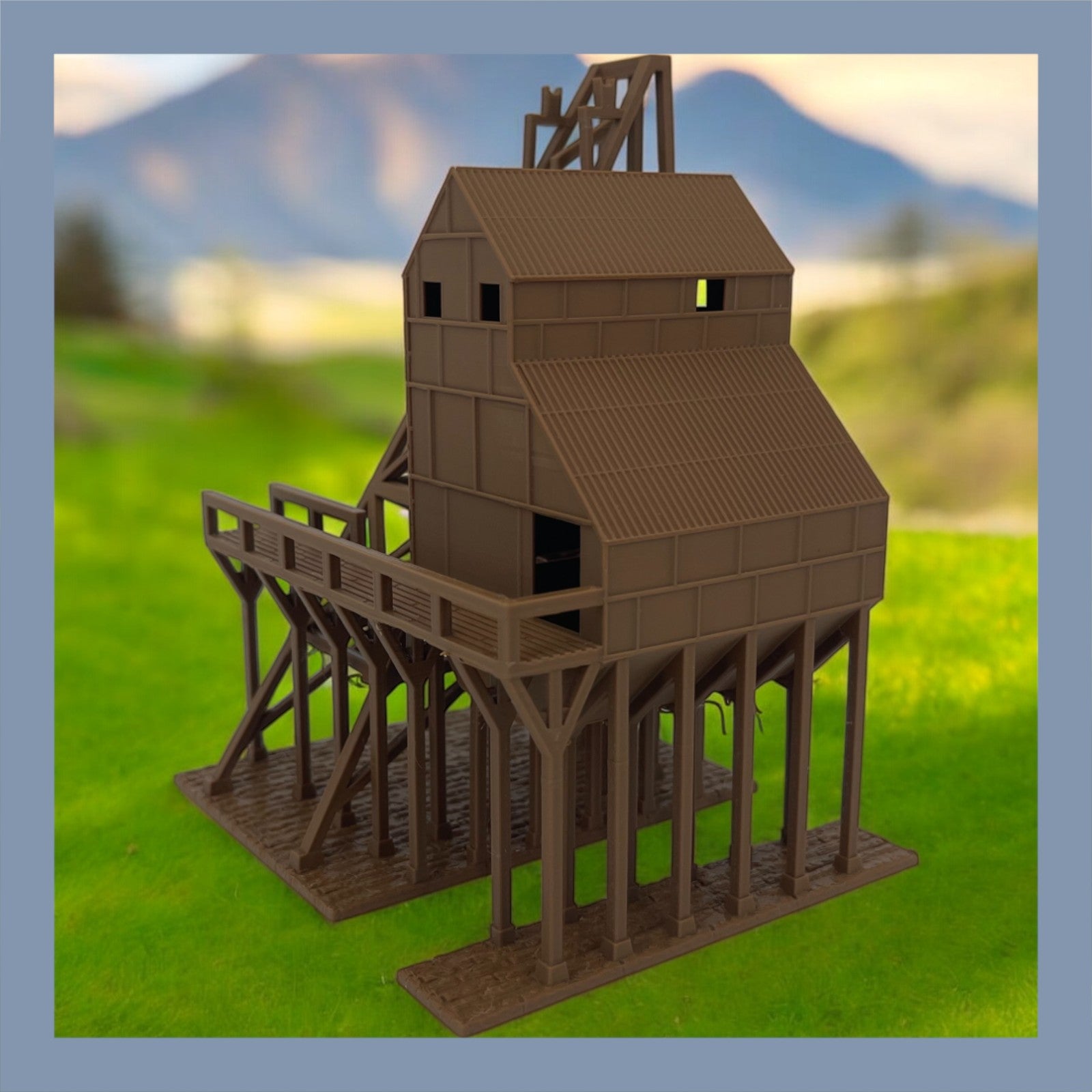 Historically, the original mine featured narrow-gauge ore cars running beneath the structure, allowing ore to be dropped down the mountainside-a detail faithfully represented in the design. This model makes an eye-catching centerpiece for scale layouts, mining scenes, or detailed dioramas.