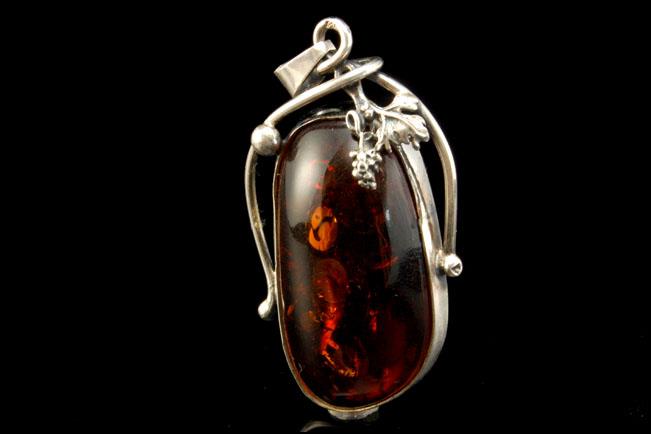 AMBER STERLING for sale. This is a very beautiful, unique and old AMBER BALTIC ROOT BEER STERLING SILVER pendant (12.8g). The pendant has marvelous root beer color amber (42 mm x 22 mm) in very good quality with modern style and sterling silver. It measures 2 1/2" x 1 1/4". The pendant has a very exotic and elegant feel to it and is in very good condition.