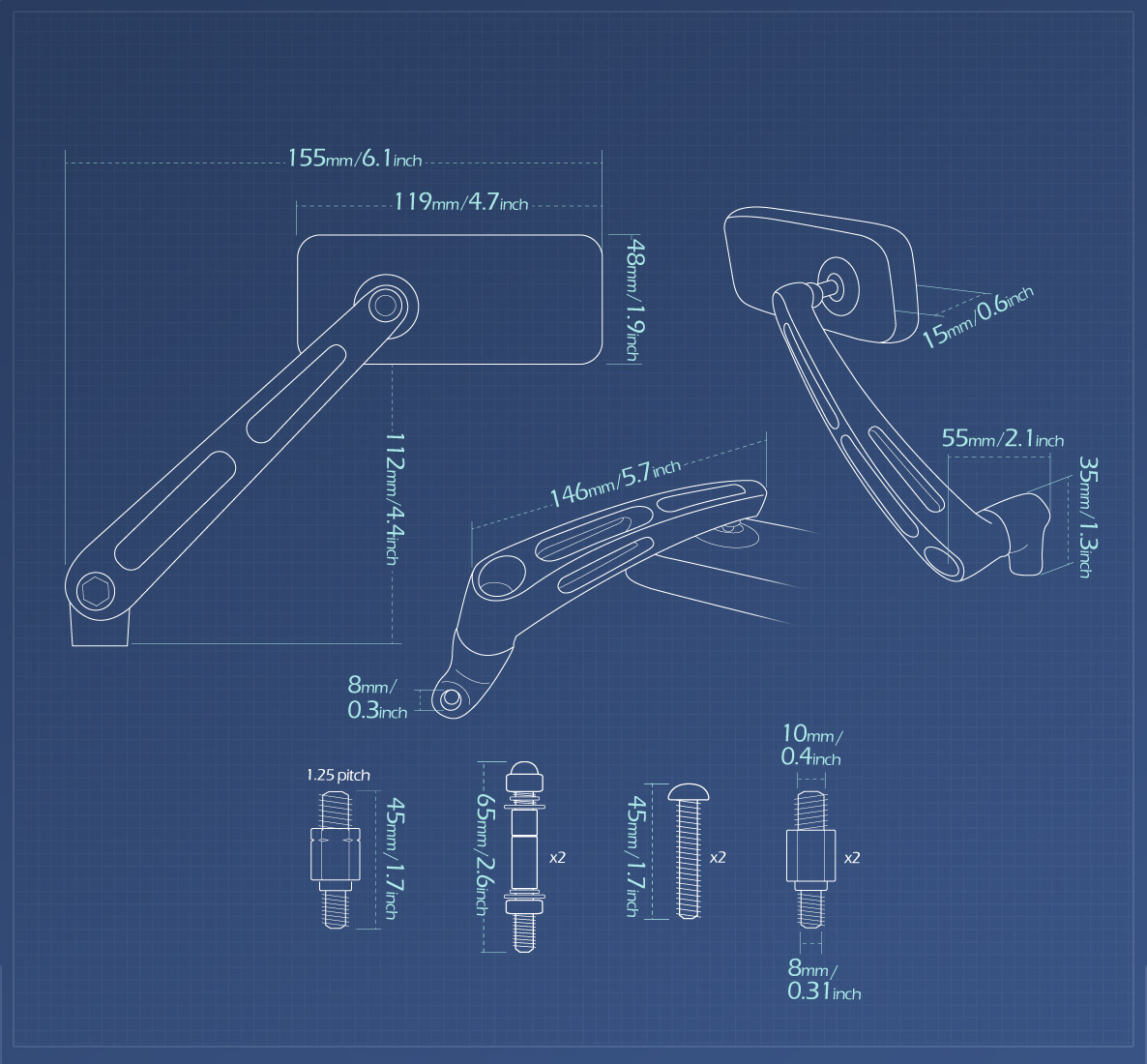 - The mirror plate and stem are constructed very well with CNC machined 6061 aircraft aluminum.