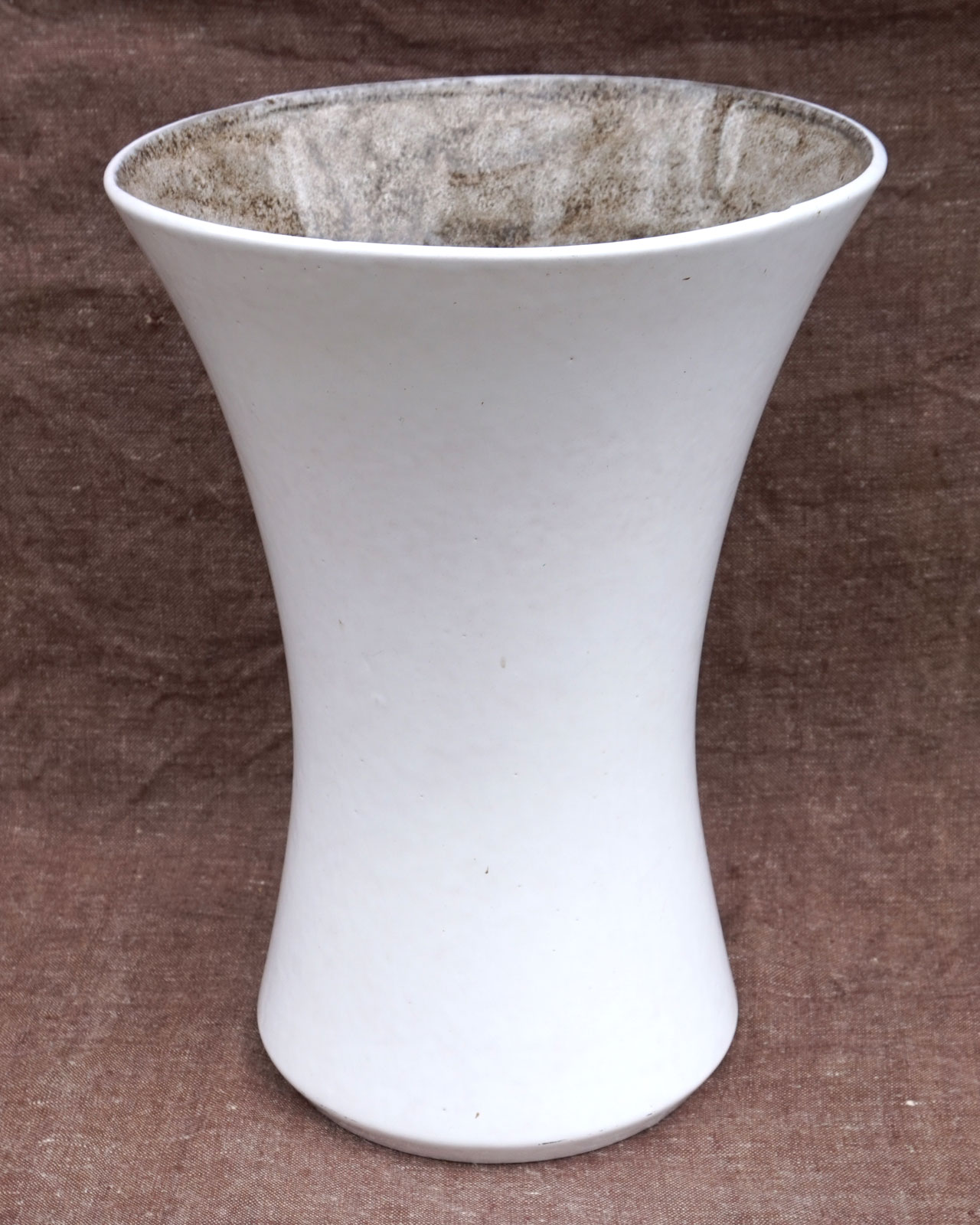 AGrand vase en grès émaillé blanc intérieur brun foncé par