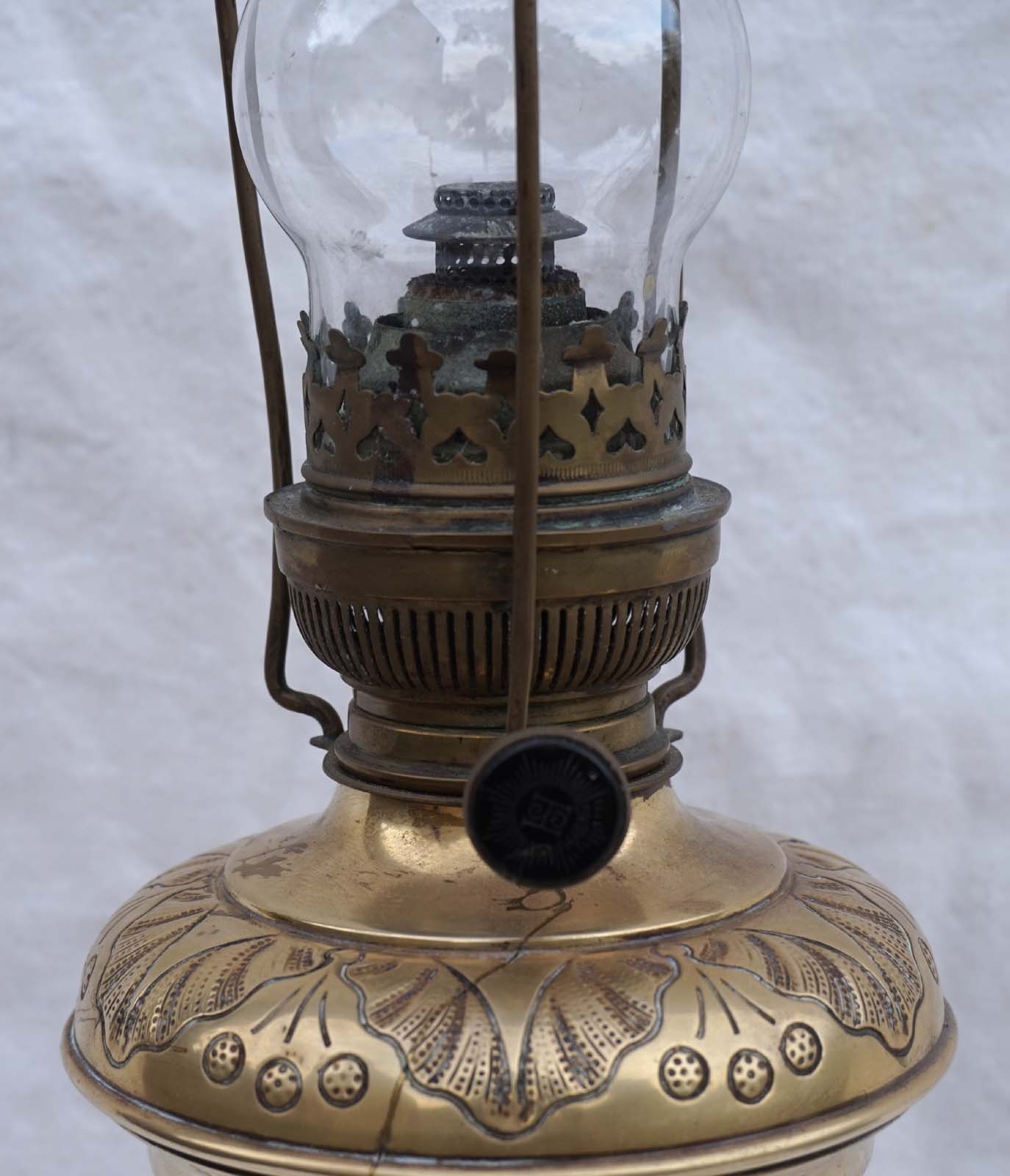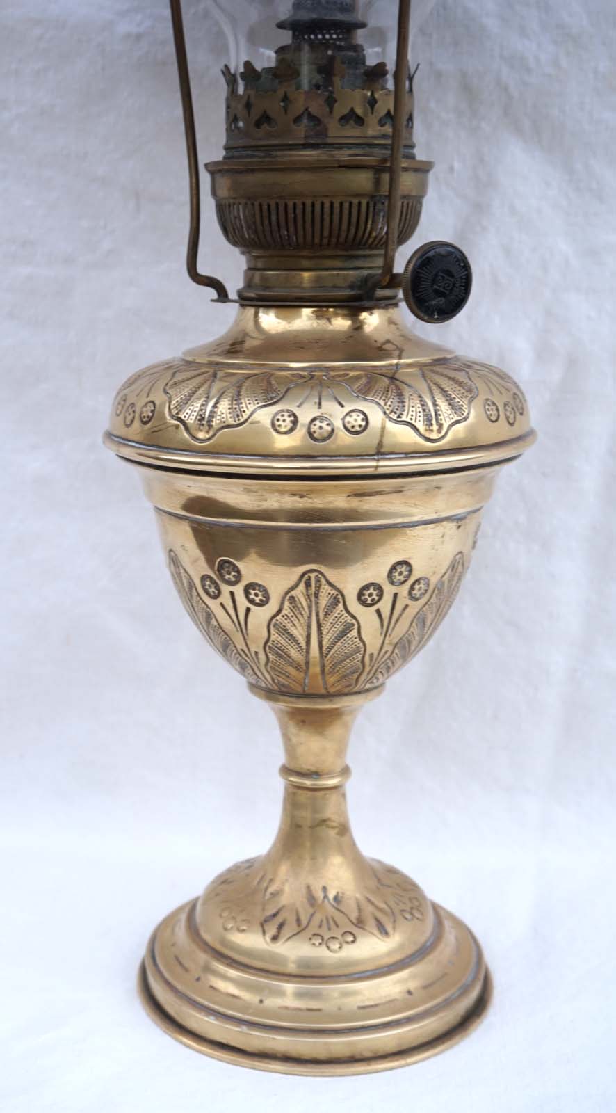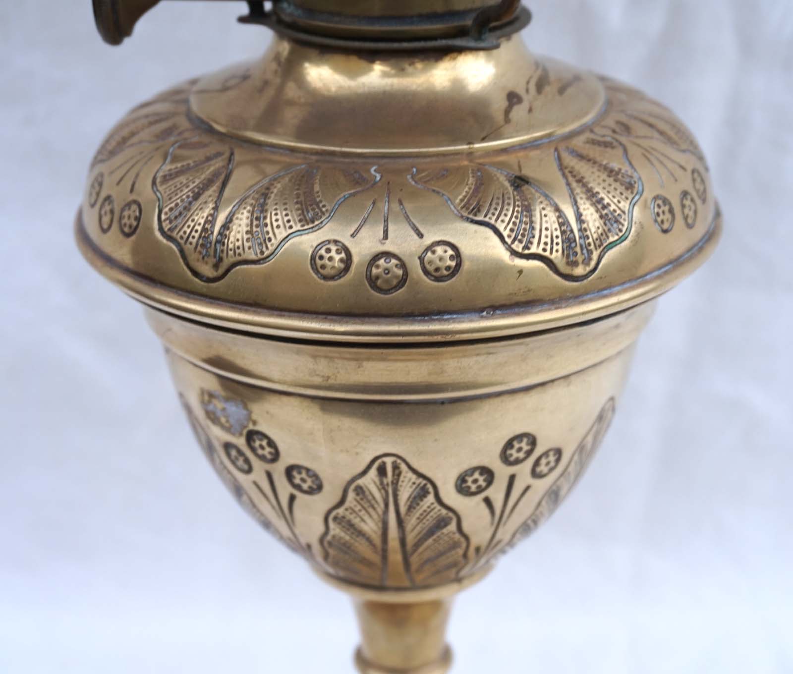 French Art Nouveau Oil Lamp Engraved Copper Shade Hasag