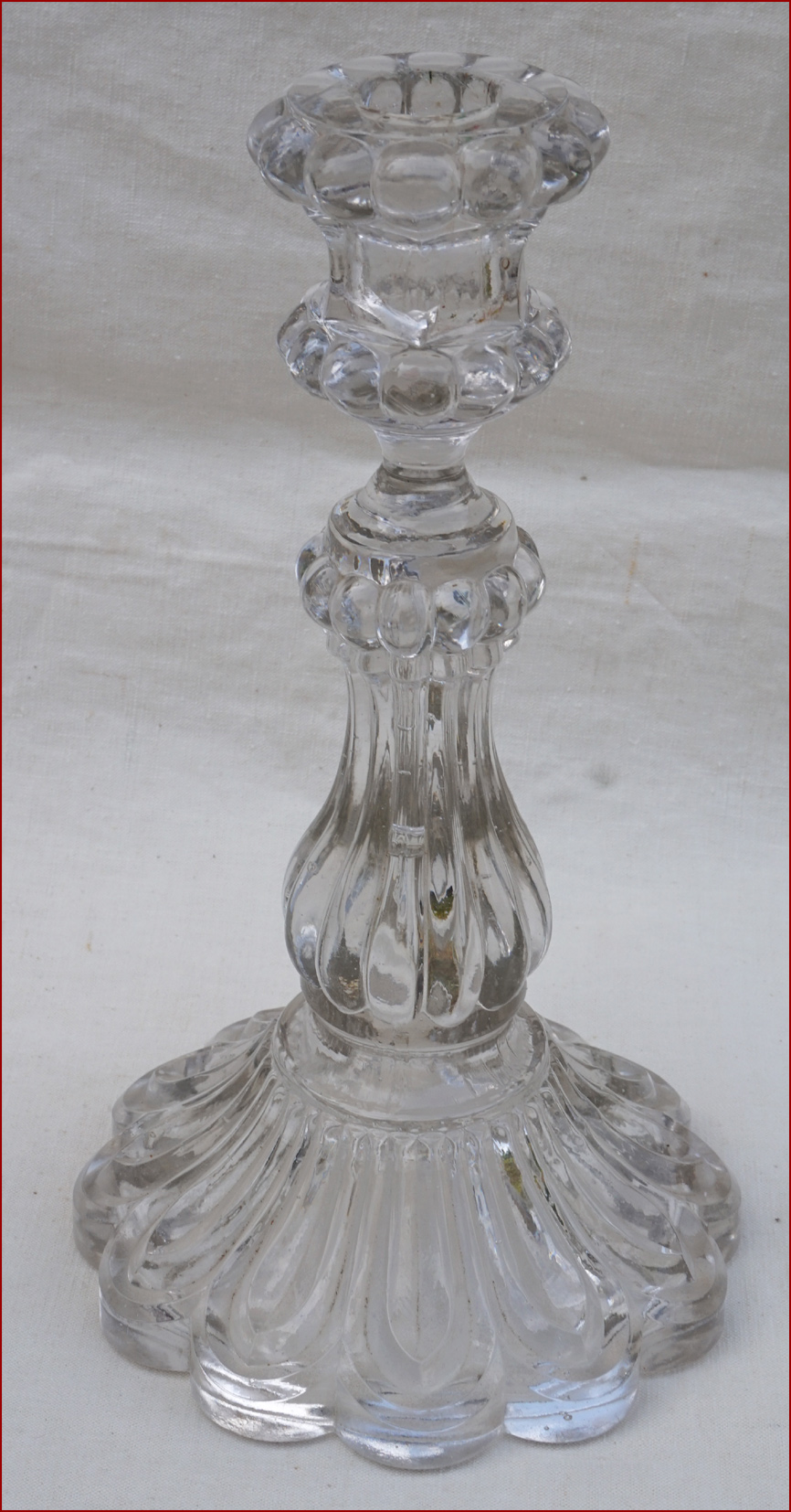 | French Large 9 1/2" Pressed Glass Candlestick Portieux ? Vallerysthal? 1910 |
