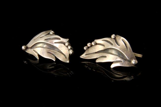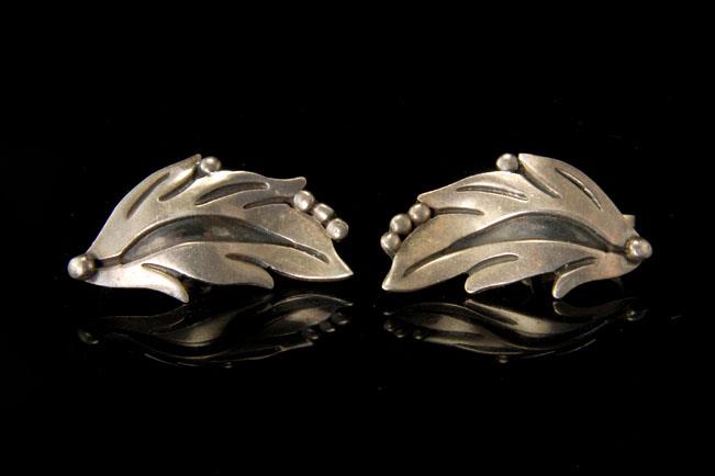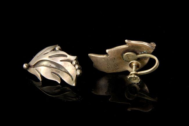 These are two very beautiful and vintage MEXICAN SIGNED MARCELA ALPACA 925 STERLING screw earrings (10.9g). The ceremonial earrings have a fantastic leaf shape and sterling. The earrings have a very elegant and extravagant feel to them. The bottom has MARCELA 925 TASCO STERLING ALPACA, HECHO EN MEXICO. They measure 1 1/4". The pair is in good condition.