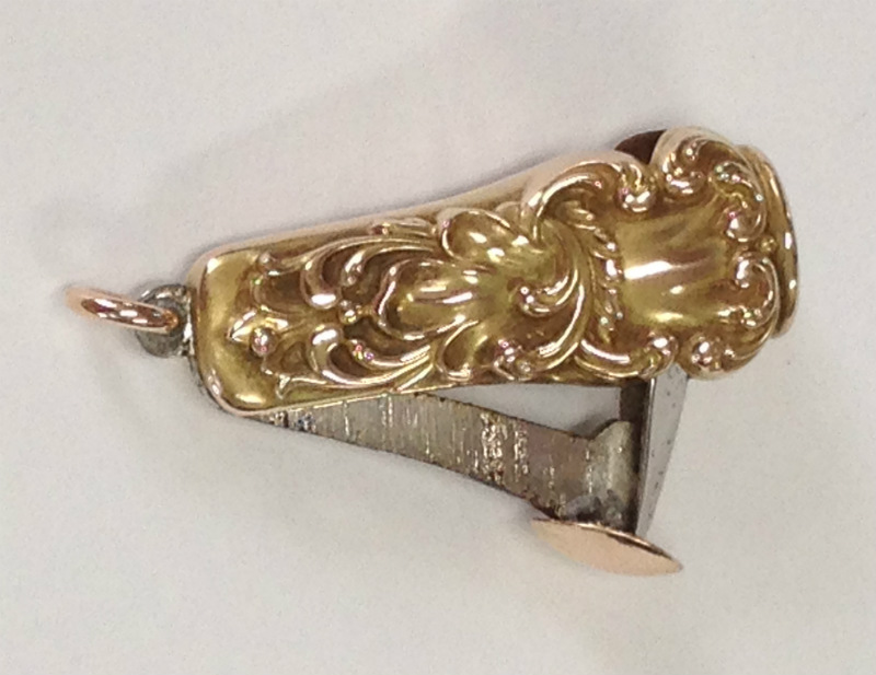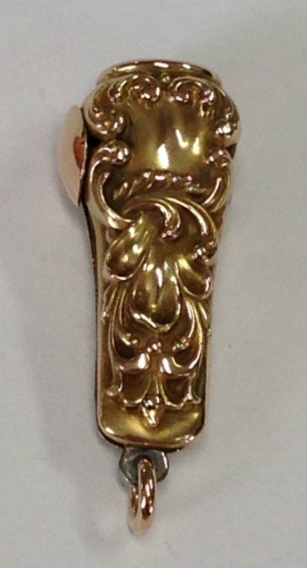 UP FOR AUCTION IS A BEAUTIFUL LADIES DECORATIVE VINTAGE CIGARETTE CUTTER IN 10K YELLOW GOLD. OUTER CASE IS SOLID 10K YELLOW GOLD WITH ELABORATE SCROLLWORK. GREAT PRE-OWNED CONDITION.