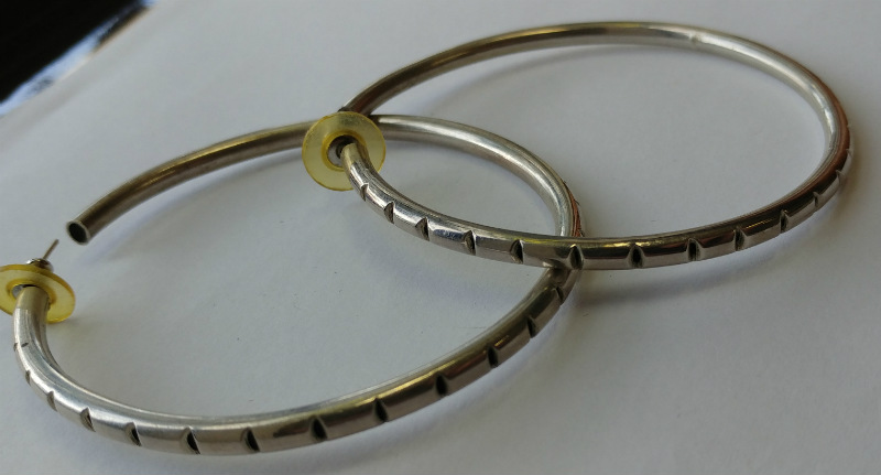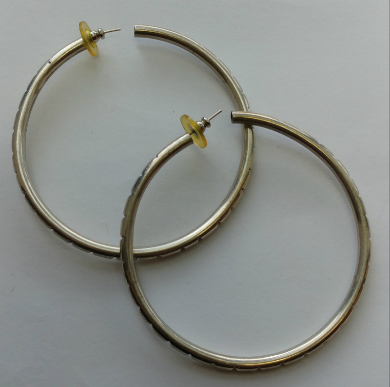 SHOWN HERE FOR YOUR CONSIDERATION IS THIS LADIES UNIQUE DETAILED HOOP EARRINGS FROM A RECENT PALM BEACH ESTATE PURCHASE. GREAT PRE-OWNED CONDITION.