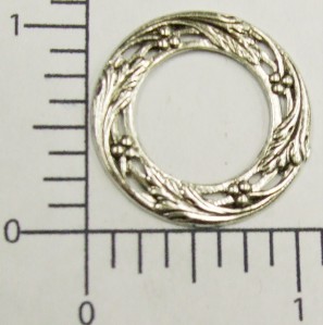 This Victorian brass stamping is richly detailed. It is plated in matte Sterling Silver, oxidized and then antiqued to enhance all of the intricate details. This stamping is from very old tooling. Made in the USA! The piece is approximately 1-1/8". 24554