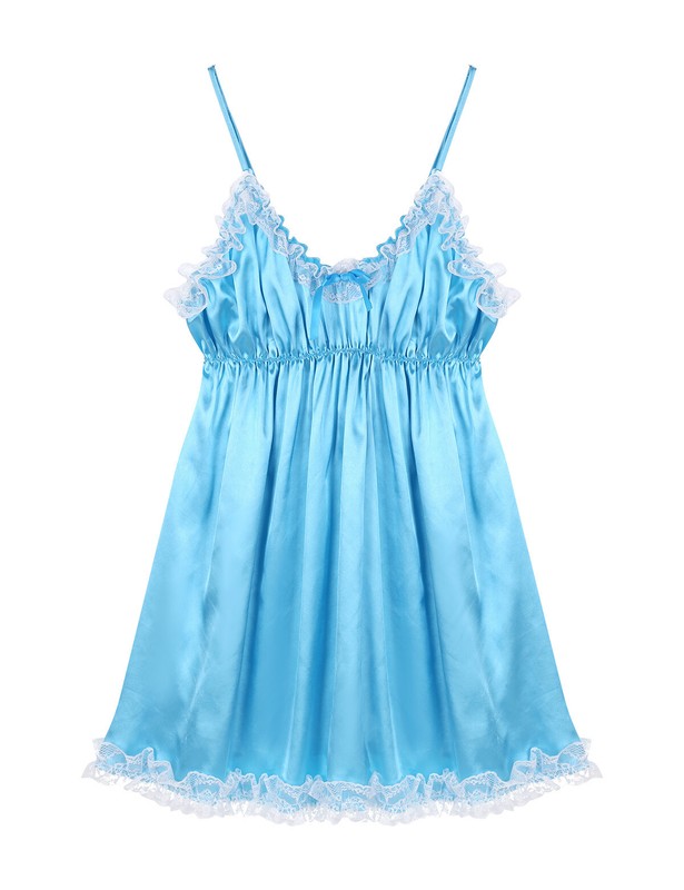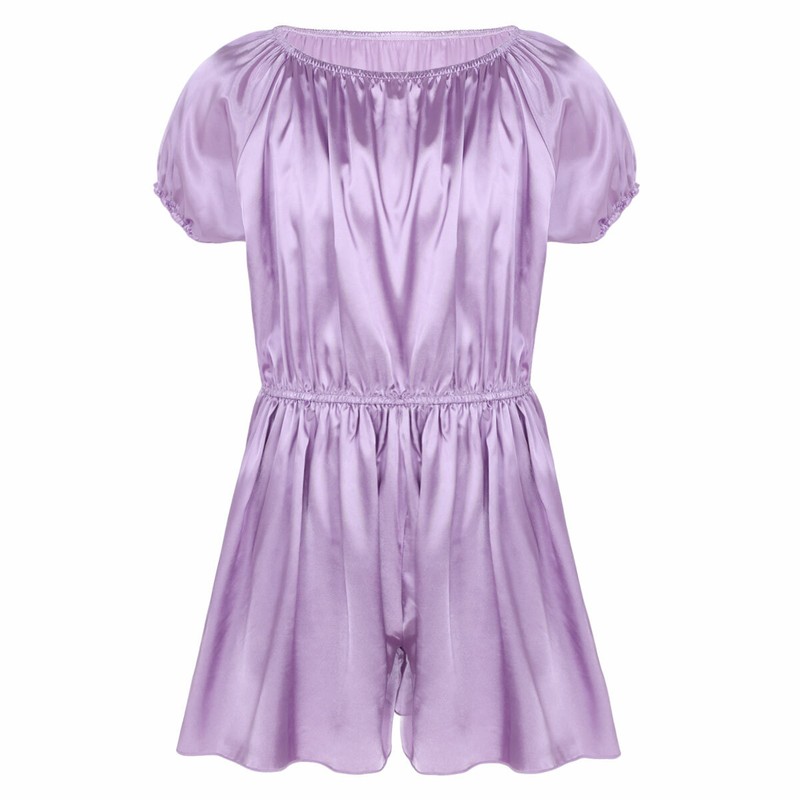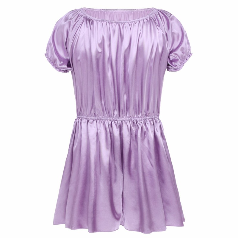 Mens sissy smooth satin fancy dress, pull on closure.