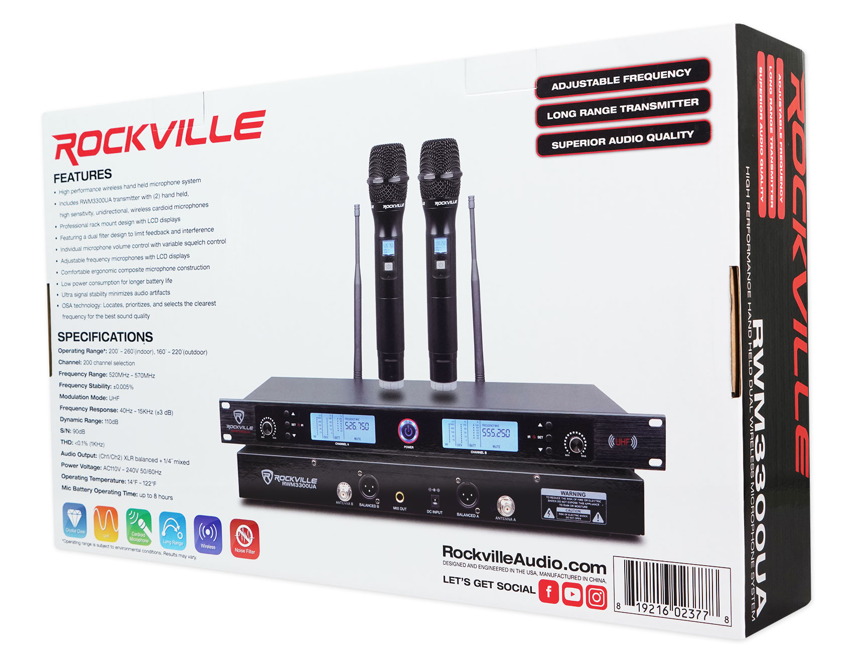 - Rockville RWM3300UA 200 Channel UHF Wireless Dual HandHeld Microphone Mic System