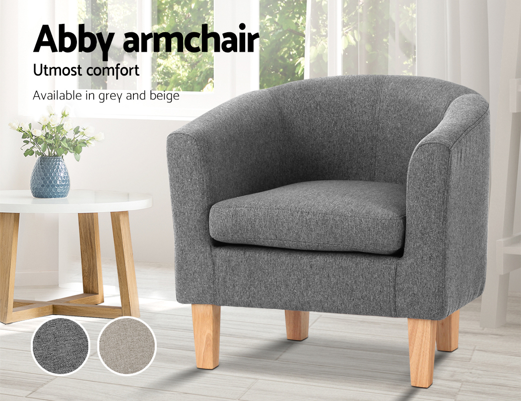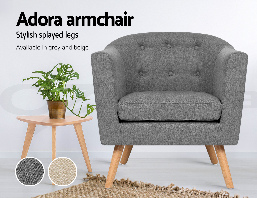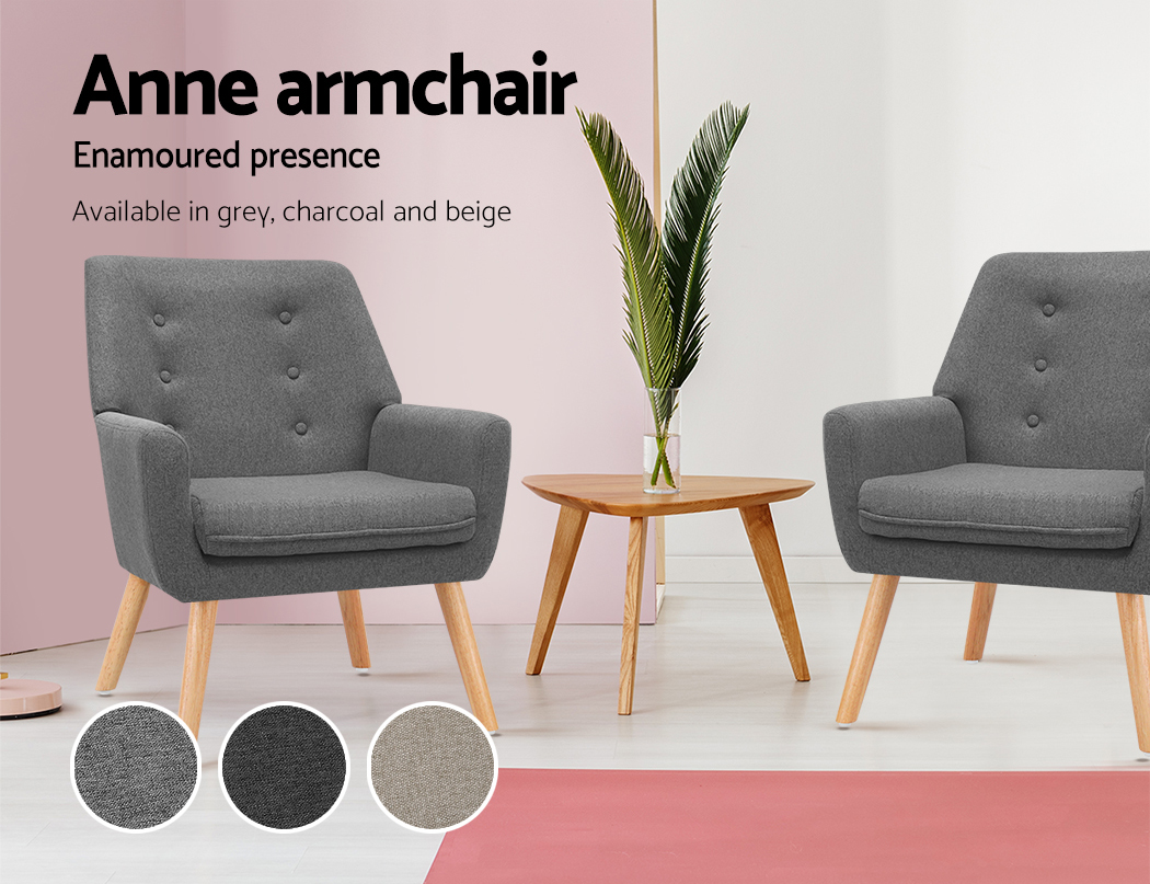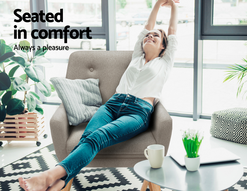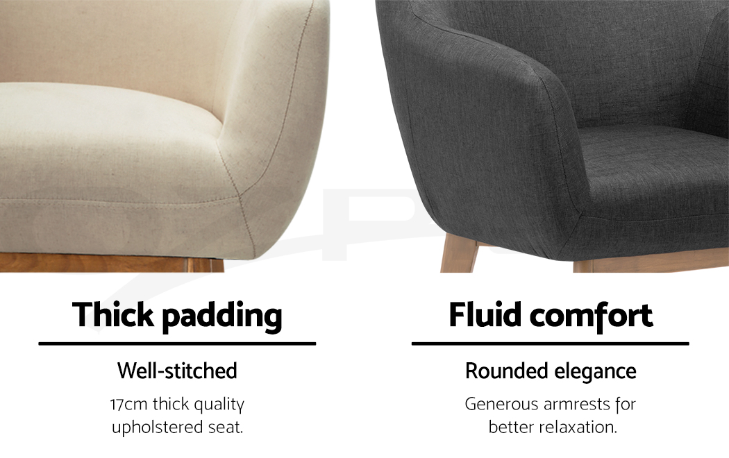 Iconic design. Timeless appeal. Our range of Artiss armchairs is the epitome of trendsetting style designed for the bold and passionate. Upholstered in quality faux linen fabric, our armchair is a full size chair with generous seating space. The extra thick foam padding ensures ultimate comfort with exceptional support. Together with a reinforced wooden frame and sturdy tapered rubber wood legs, our armchair is guaranteed to stand up to durable use for many years to come.