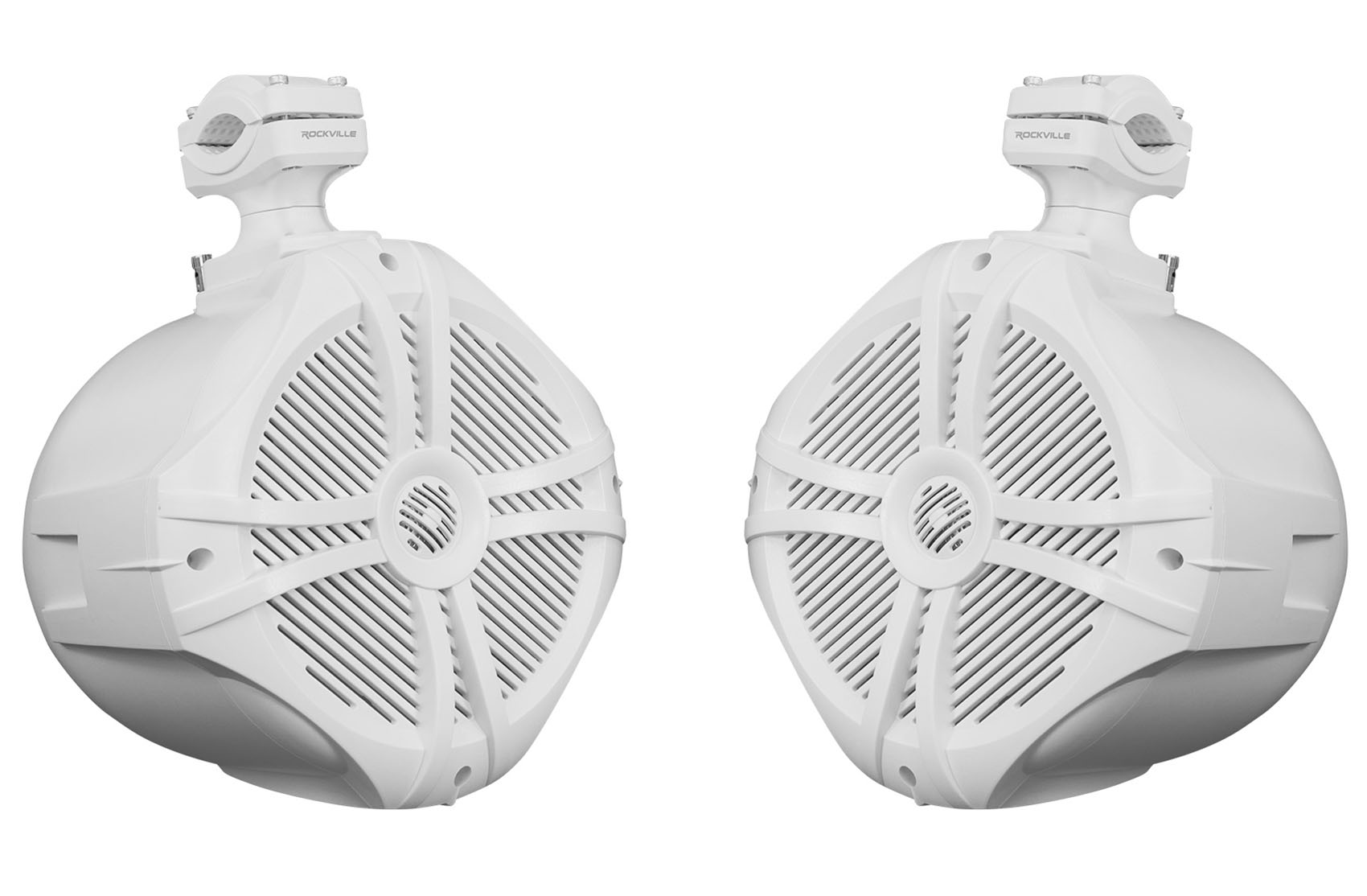 - Pair Rockville RWB90W White 8" 300w Marine Wakeboard 360° Swivel Tower Speakers