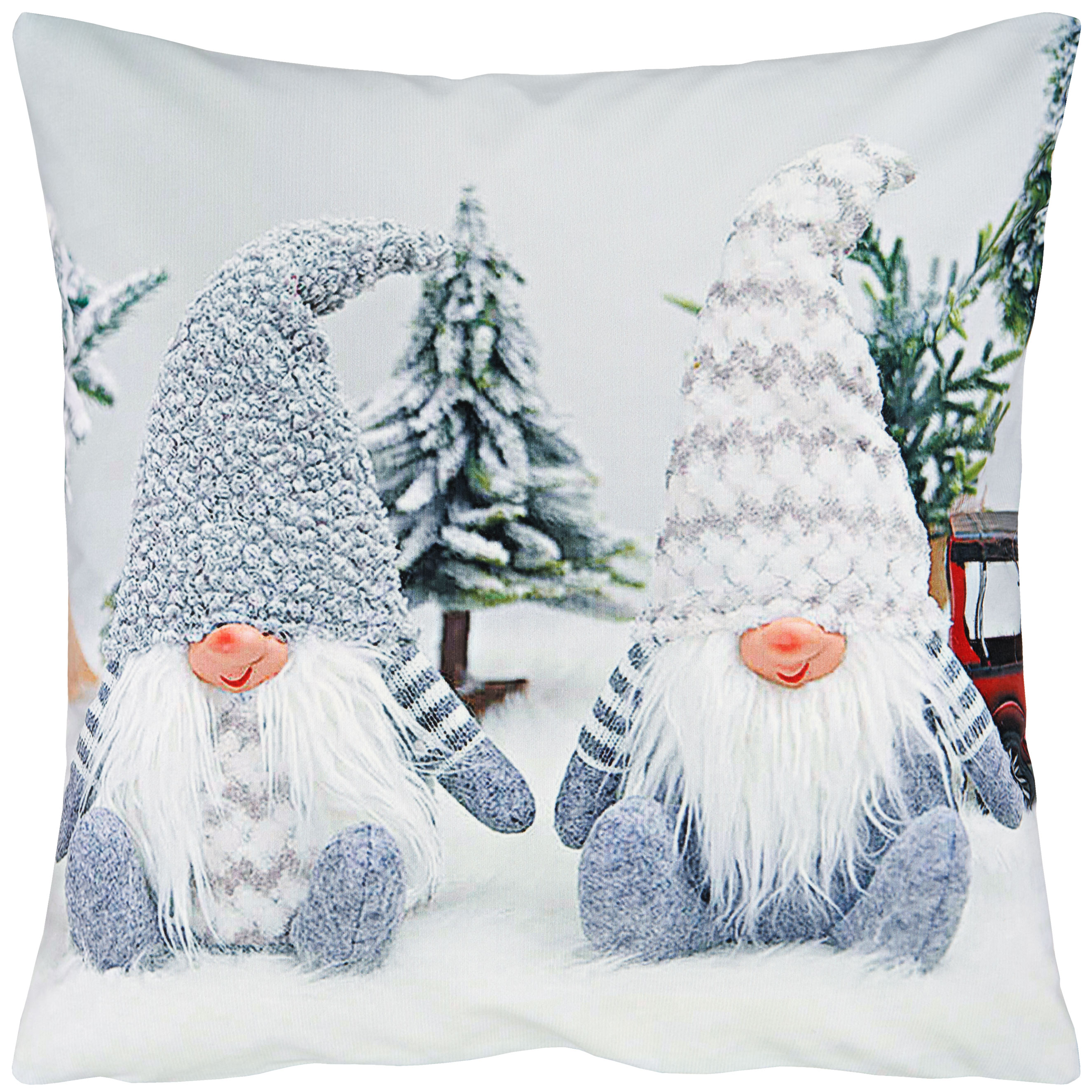 Kissenhülle Kissen Kissenbezug 40x40 Weihnachten Dekokissen Winter Wichtel Grau