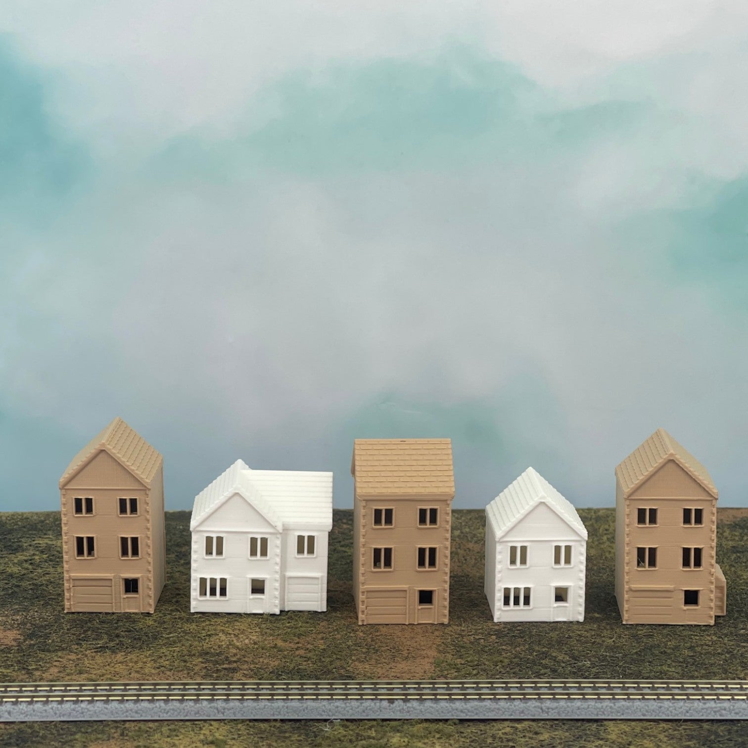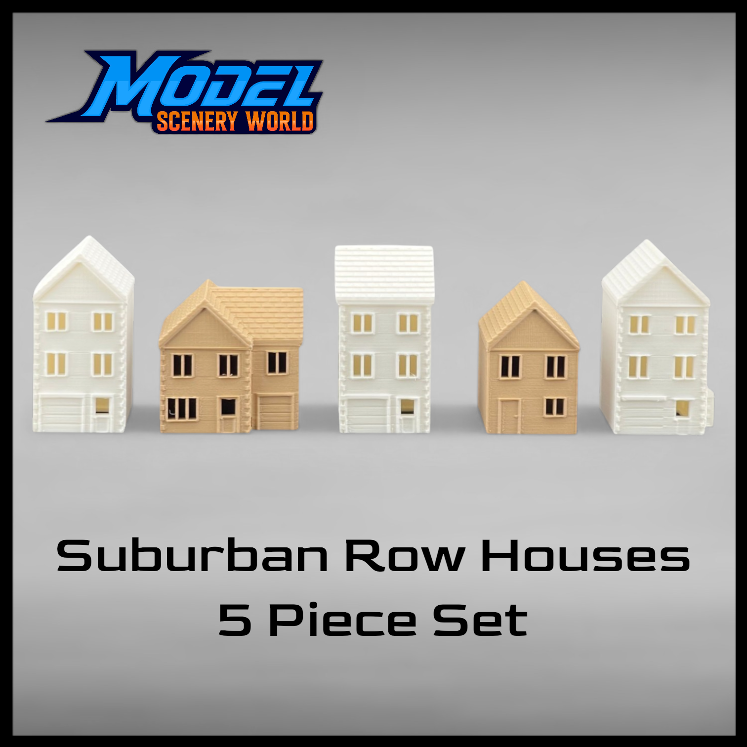 Add instant depth and realism to your layout with this Suburban Row Houses 5-Piece Set. Featuring classic multi-story row house architecture, this set is perfect for suburban neighborhoods, urban edges, or background scenery.