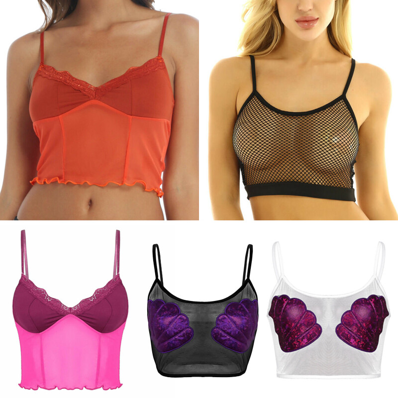 Breathable fabric, mesh bralette, sleeveless with spaghetti shoulder straps.