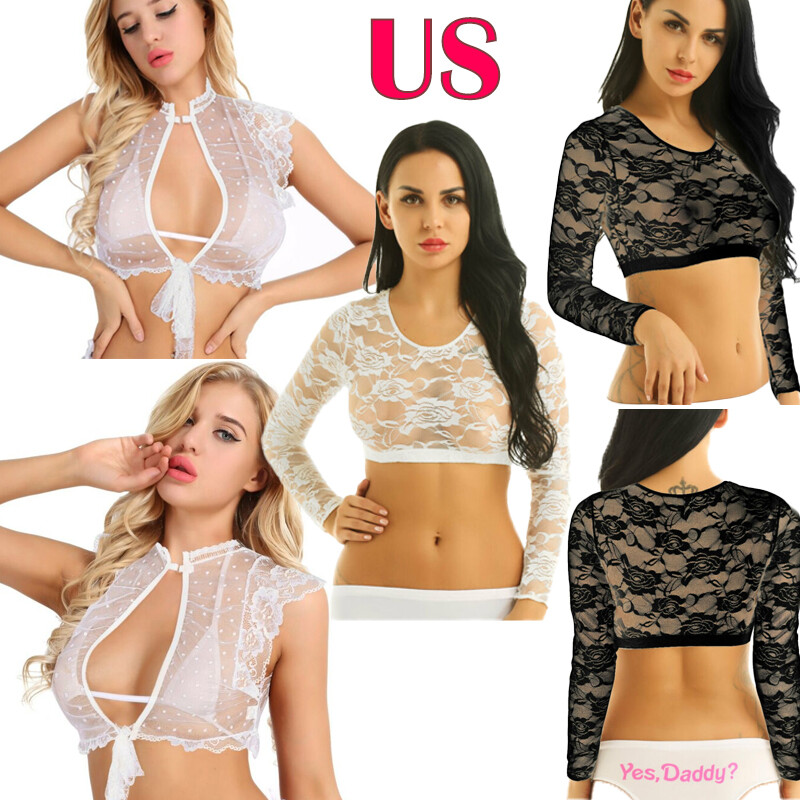 Women adult sheer crop top, slim fit and see through design.