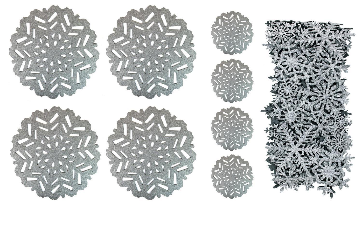 SILVER SNOWFLAKE DESIGN: This decorative set comes in the shape of a Snowflake. Shimmering glitter and Christmas design will add warmth and festive vibes to your table settings.