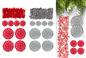 RED set includes 4 red coasters + 4 red placemats, RED + TABLE RUNNER set includes 4 red coasters + 4 red placemats + red table runner. SILVER set includes 4 silver coasters + 4 silver placemats, SILVER + TABLE RUNNER set includes 4 silver coasters + 4 silver placemats + silver table runner.