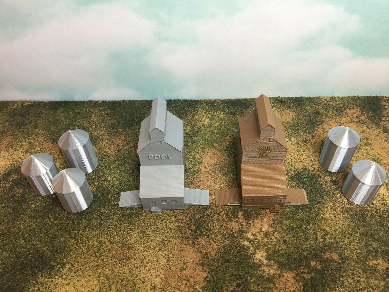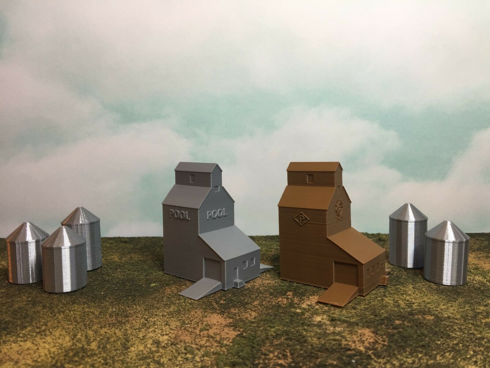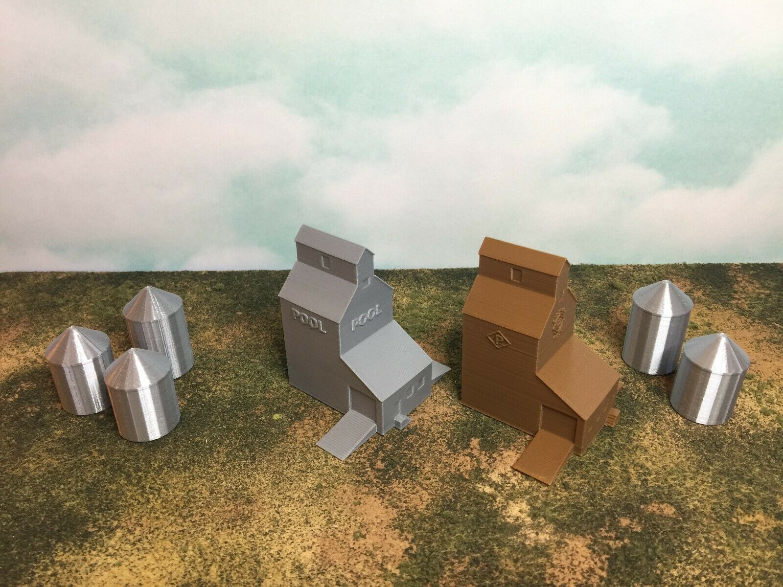 Silo's Color is Metallic Silver to simulate Aluminum Grain Silos without requiring paint.