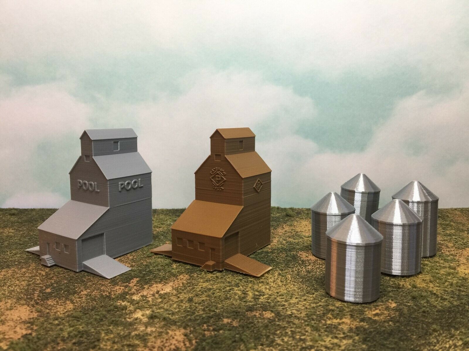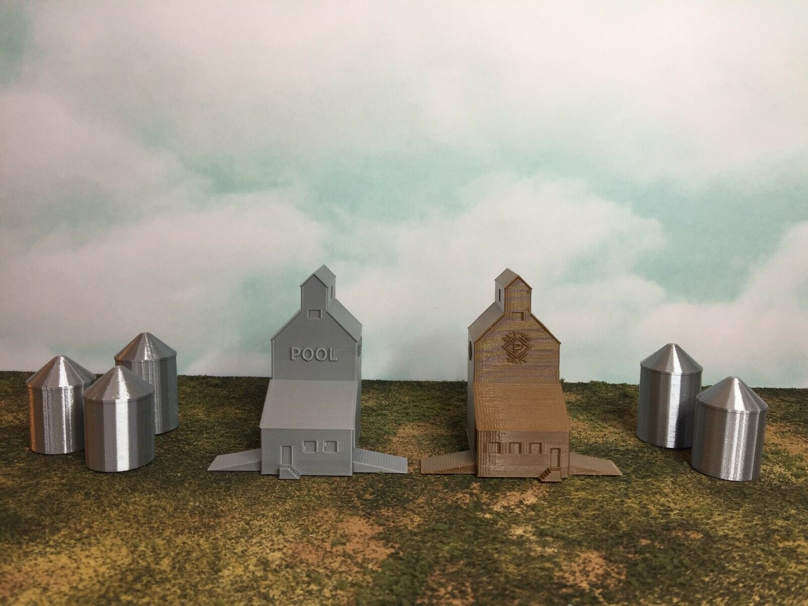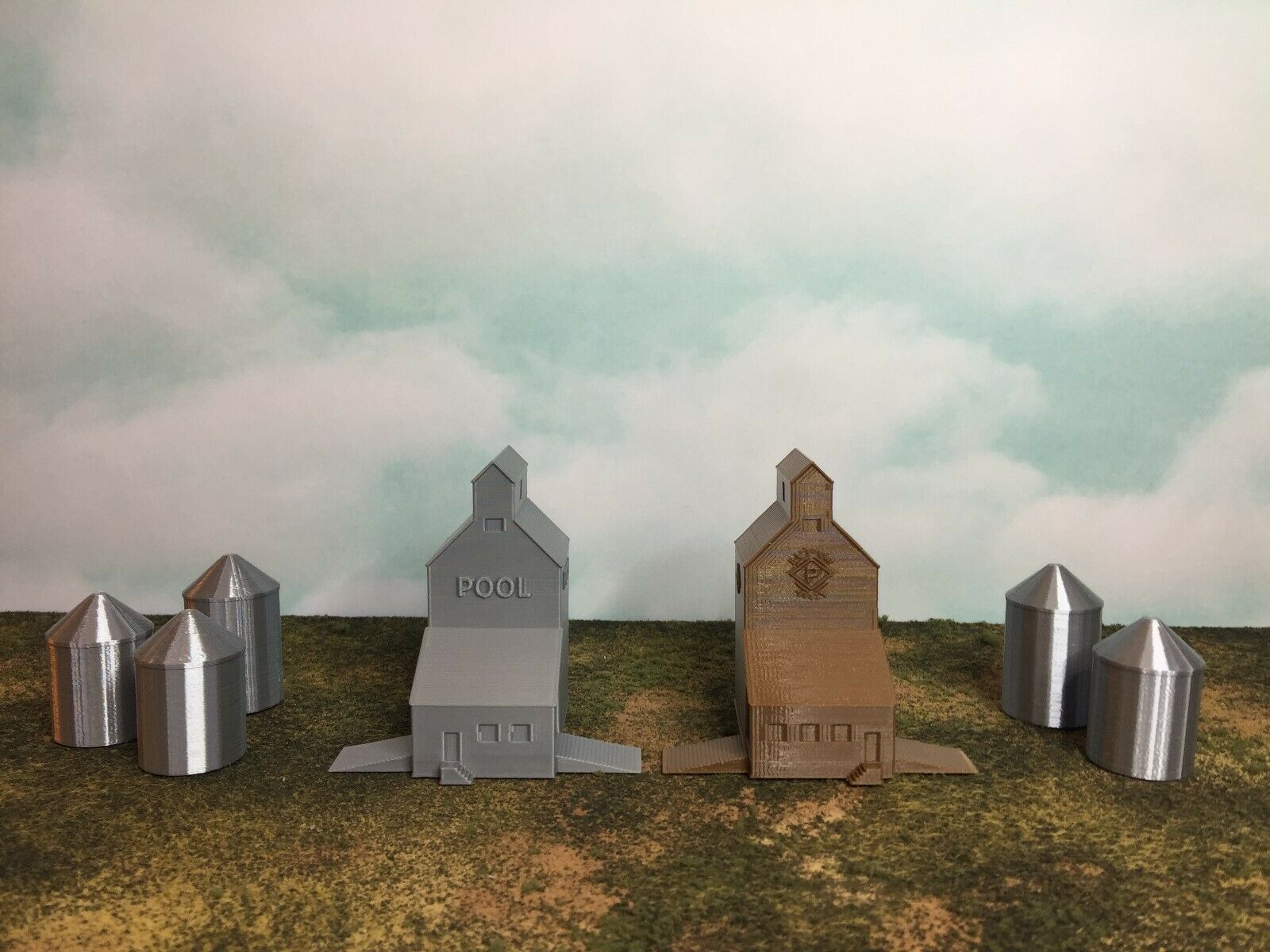 Silo's Color is Metallic Silver to simulate Aluminum Grain Silos without requiring paint.