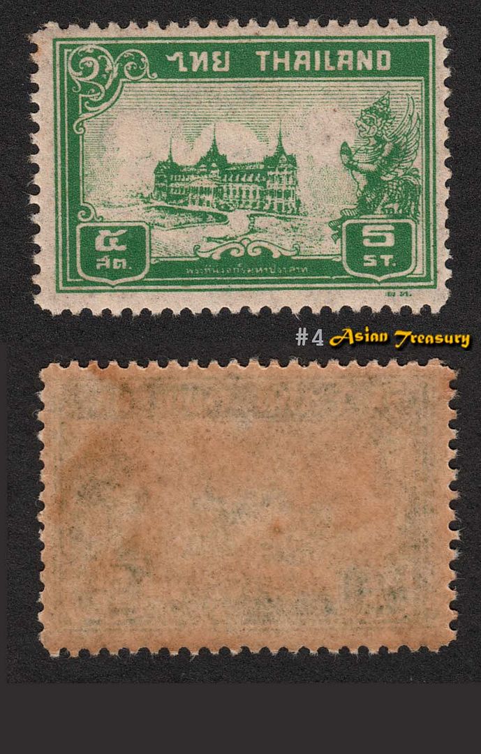 Description : THAILAND (formerly Siam) postage stamp Chakri Palace, 'Error' 5 Satang in green 3 Satang Plate, Unused, Very rare variety