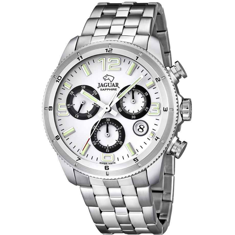 Orologio cronografo uomo jaguar executive j687/2. Modello con cassa in acciaio di forma rotonda, quadrante bianco, indici con numeri arabi applicati bracciale in acciaio.