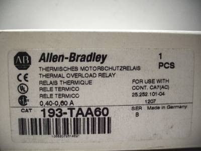 193-TAA60 SER. B OVERLOAD RELAY 0.4-0.6A BIMETALLIC