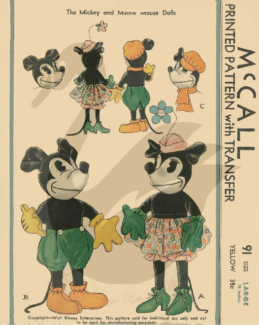 Reproduction Vintage 1933 Mickey & Minnie Mouse 18" Doll Sewing Pattern McCall 91