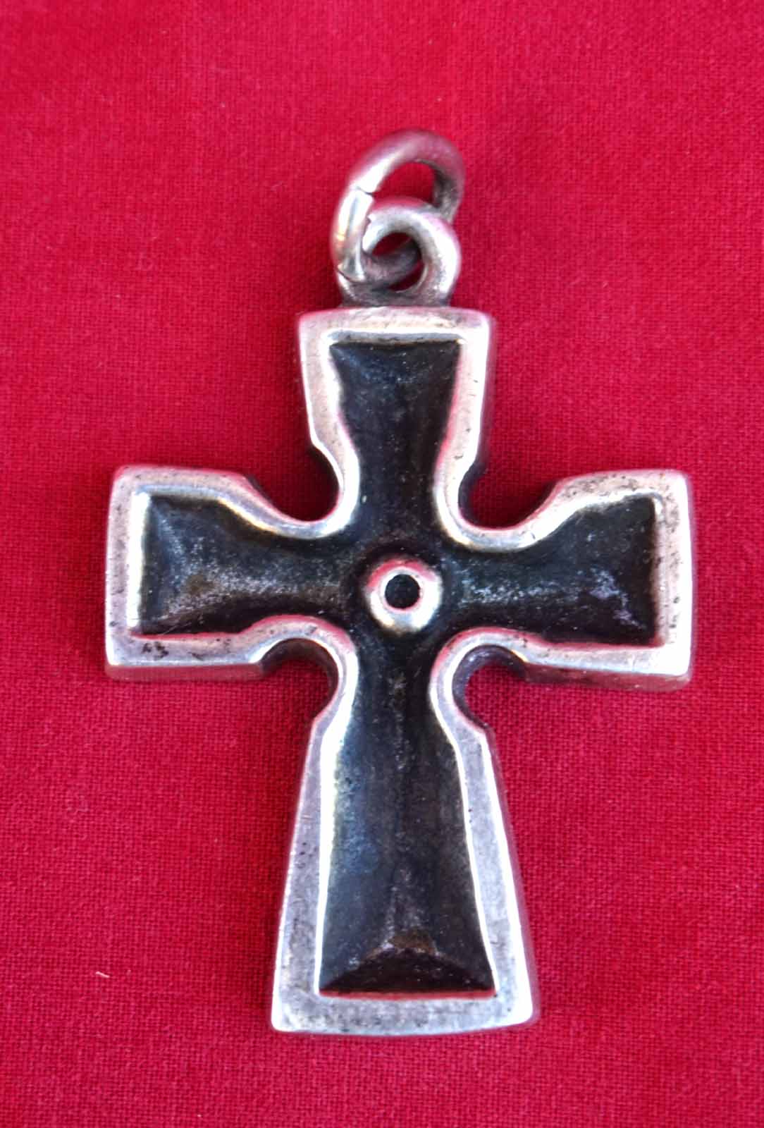 French celtic cross pendant in sterling silver made by Pierre Peron (1905-1988) for Kelt. It's signed on the back, and hallmarked with the french sterling silver (.925) on the ring. 1 3/4" (4.5cm) height, 1 1/4" (3.2cm) width. Perfect condition as shown by the following pictures. The shipping cost for US and Canada is $15 with 4/6 days for delivery with official delivery service "La Poste" |