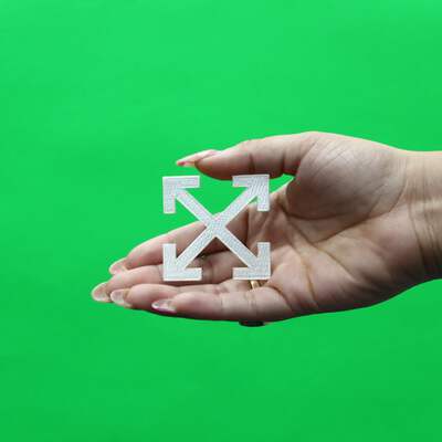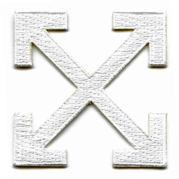 Add this White Crossing Arrows embroidered patch to your growing brand collection.