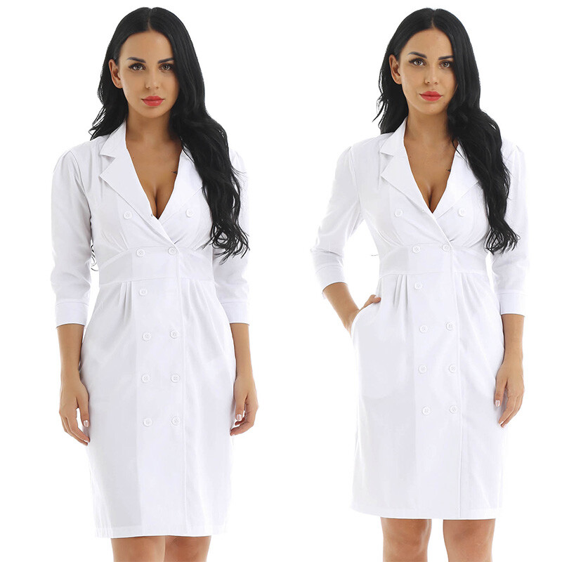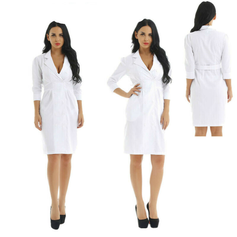 Womens medical nurse doctor cosplay costume uniform dress.